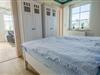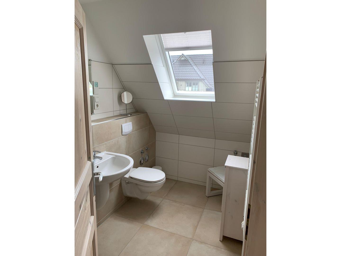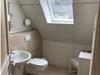 Das Schlafzimmer ist mit einem Doppelbett eingerichtet und das Badezimmer verfügt über eine ebenerdige Dusche.