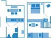 Desweiteren befinden sich hier die zwei Doppelbett- Schlafzimmer und ein weiteres Zimmer mit zwei Einzelbetten und zustellbarem Kinderreisebett.