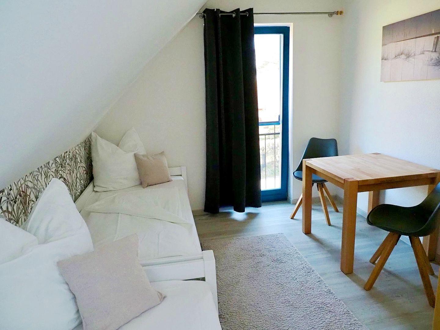 Über eine offene Treppe gelangen Sie ins Obergeschoss. Auf der Galerie stehen unseren Gästen zwei Relax-Sessel zur Verfügung.