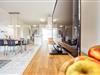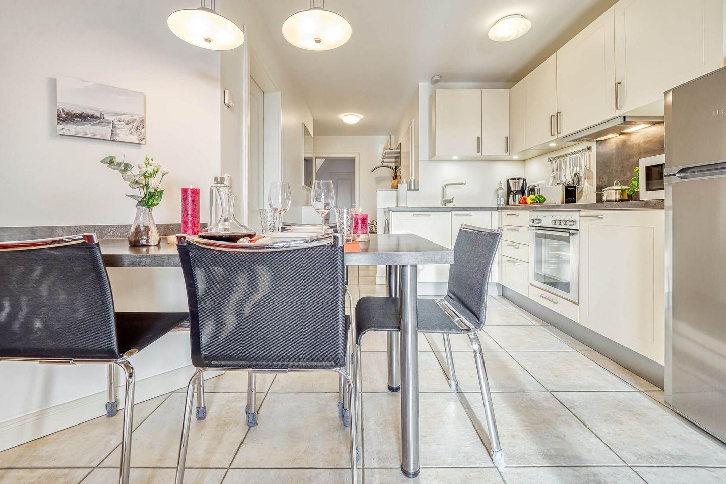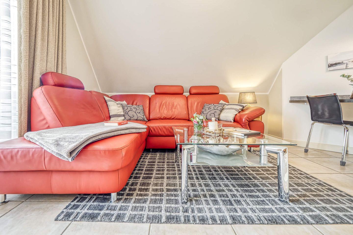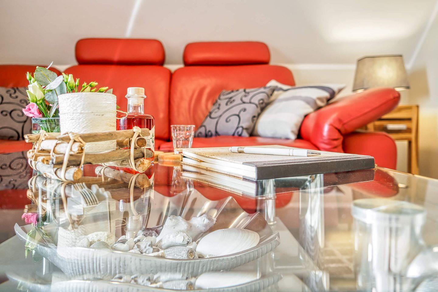 Eine hochwertige und komfortabel eingerichtete Ferienwohnung für 1-4 Personen verfügt über eine Einbauküche mit Geschirrspüler, Elektroherd und weiteren elektrischen Geräten, sowie LED-TV + DVD-Player und gemütlichem Sofa im integrierten Wohnzimmer.