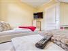 Es gibt ein Schlafzimmer mit Doppelbett sowie ein weiteres Kinderzimmer mit uwei Einzellbetten.