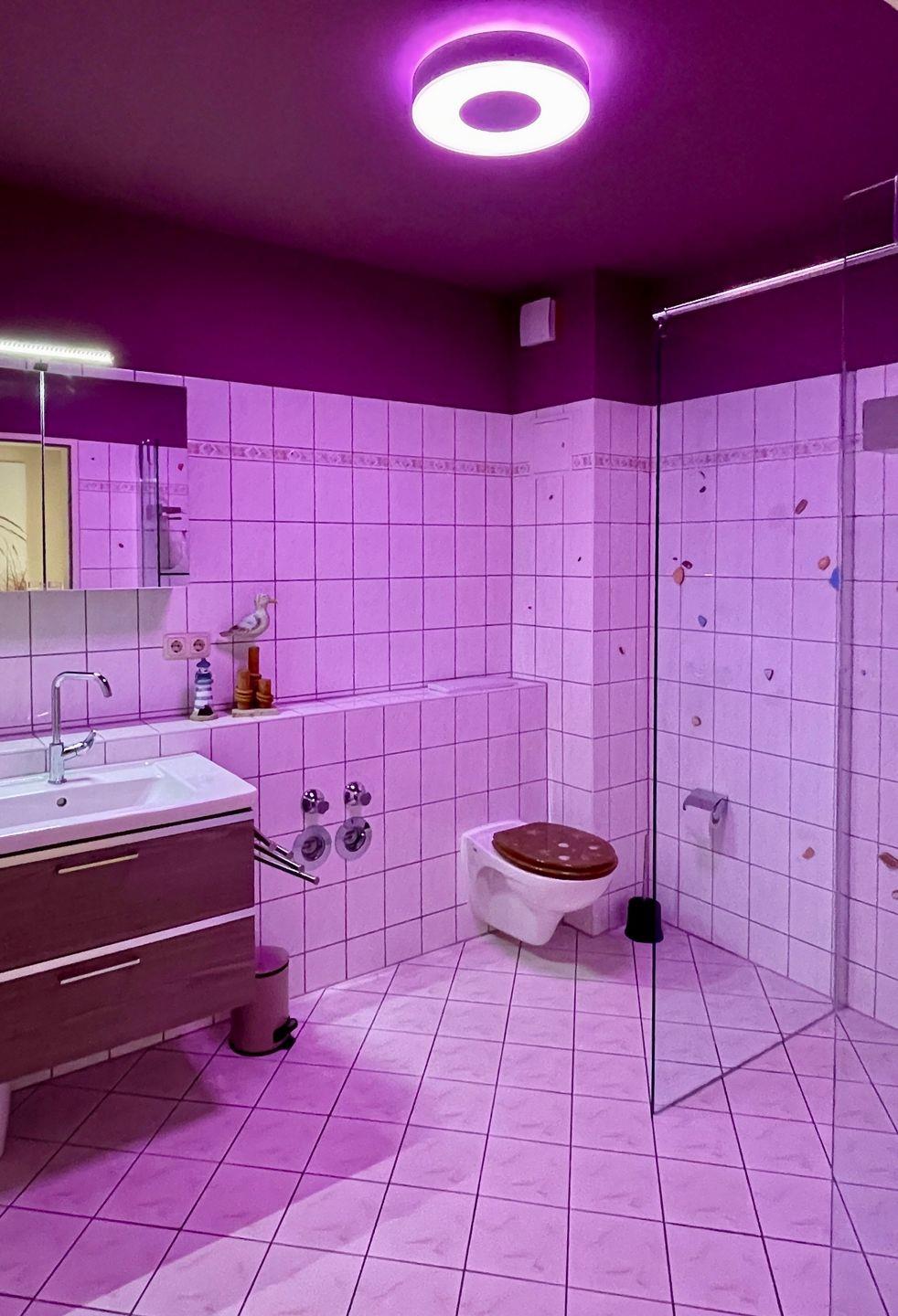 Badezimmer: Walk-In Dusche, 1 Waschbecken, 1 Toilette