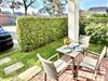 Die Terrasse, mit südlicher Ausrichtung, ist von einer kleinen Rasen-/Gartenfläche umgeben.