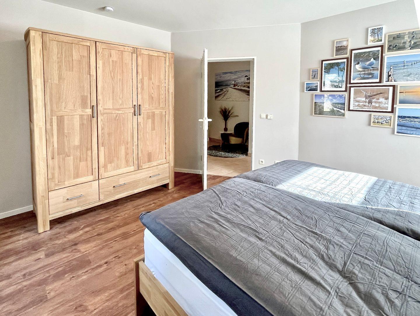 Schlafzimmer 1: Doppelbett (1,80 x 2,00 m) mit verstellbarem Lattenrost. Ein großer Kleiderschrank.