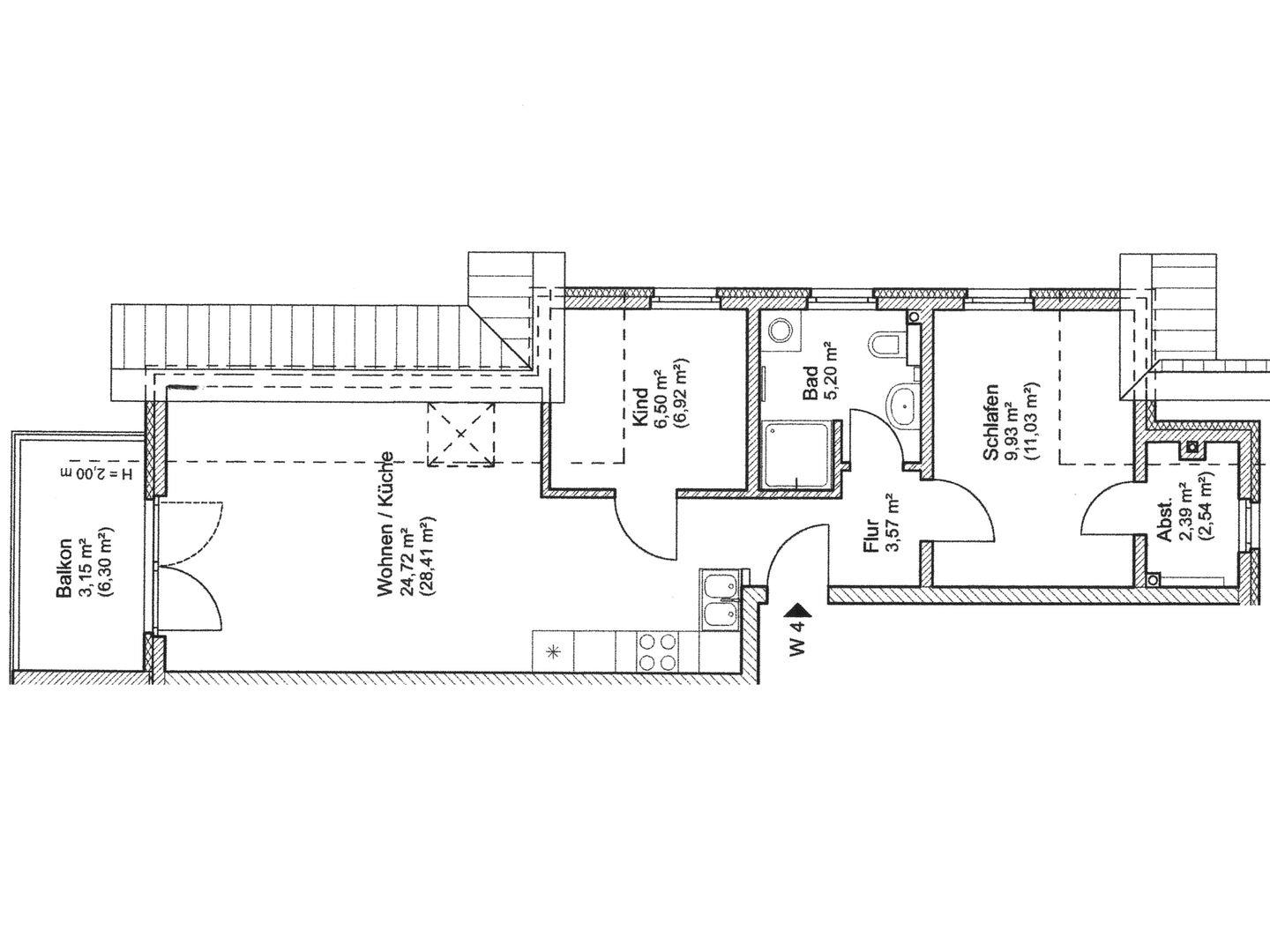 Die komplett eingerichtete Einbauküche verfügt über einen Herd mit Backofen, Spülmaschine, Kühl-/Gefrierkombination und Mikrowelle.