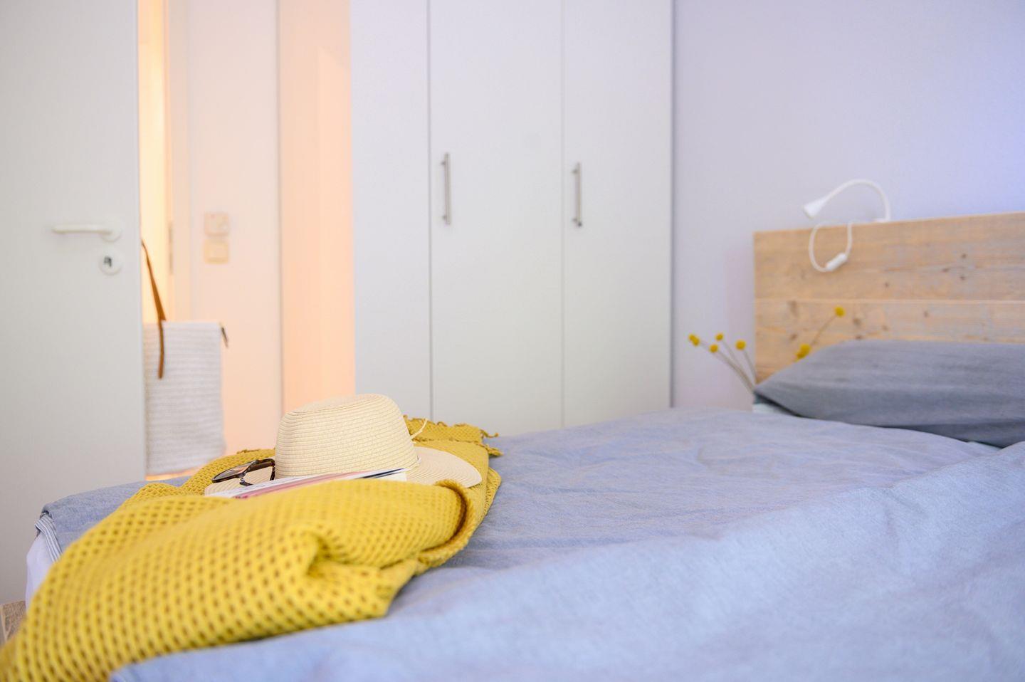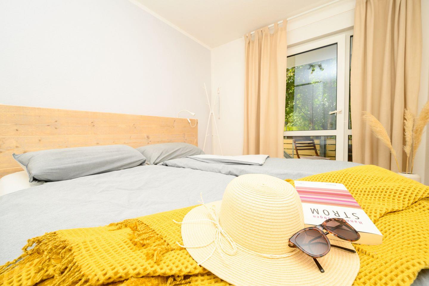 Vom Schlafzimmer EINS mit Doppelbett (160 cm breit) gelangen Sie auf den Westbalkon, von dem Sie das Treiben auf dem Deich verfolgen können. Im Schlafzimmer ZWEI schlafen Sie komfortabel im Etagenbett mit 2 verschieden großen Liegeflächen (140 bzw. 90 cm breit).