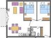 Sie verfügt über einen Wohnbereich, 2 Doppelbett- Schlafzimmer und Duschbad.
