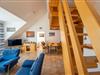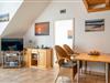 Im Wohnbereich mit integrierter Küche befindet sich eine zusätzliche Schlafmöglichkeit mit Doppelbett für 2 Personen auf der Galerie.