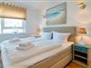 Das Schlafzimmer lädt mit einem Boxspringbett (H2/H3) zum erholsamen Schlaf ein. Der Balkon mit Gartenmöbeln und Sonnenschirm befindet sich auf der Ostseite, für ein gemütliches Frühstück in der Sonne bestens geeignet.