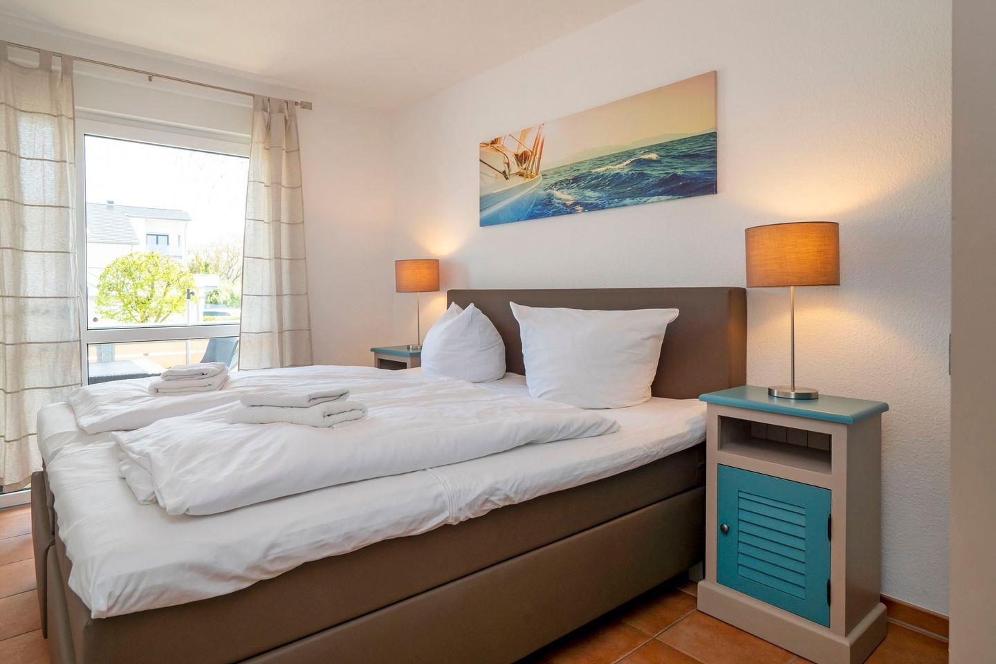 Es gibt zwei separate Schlafzimmer mit je einem Doppelbett (Boxspringbetten H2/H3), mit LED-TV inkl. DVD-Player in einem der Schlafzimmer. So ist die Wohnung besonders gut geeignet für zwei gemeinsam reisende Paare oder eine Familie mit zwei Kindern.