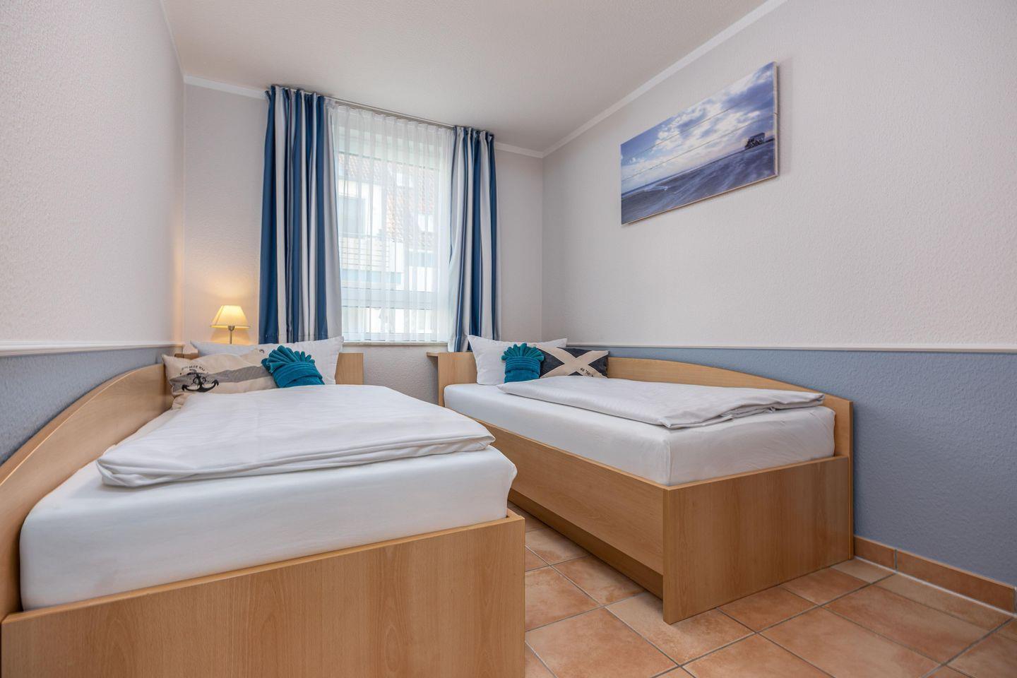 Ein Wohnzimmer, zwei separate Schlafzimmer, ein Badezimmer mit Dusche, ein Balkon Richtung Westen, Sat-TV, Radio sowie einen Außenstellplatz für Ihren Pkw und vieles mehr tragen zum Wohlfühlcharakter der Ferienwohnung bei.