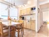 Das Wohnzimmer auf der unteren Etage ist mit einem gemütlichen Sessel mit Sofa, TV und integrierter Küche sowie einem Esstisch ausgestattet.