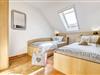 Die Ferienwohnung bietet auf der ersten Ebene zwei getrennte Schlafzimmer, ausgestattet mit einem Doppelbett und zwei separaten Einzelbetten sowie ein Badezimmer mit Dusche und WC.