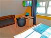 Im hellen und geräumigen Schlafzimmer befindet sich ein hochwertiges Doppelbett (180x200 cm, Komforthöhe), ein weiterer Flatscreen mit Kabel TV, ein Radiowecker, ein großer Kleiderschrank und ausreichend Ablagemöglichkeiten. Zusätzlich steht ein Einzelbett für die 3. Person zur Verfügung.