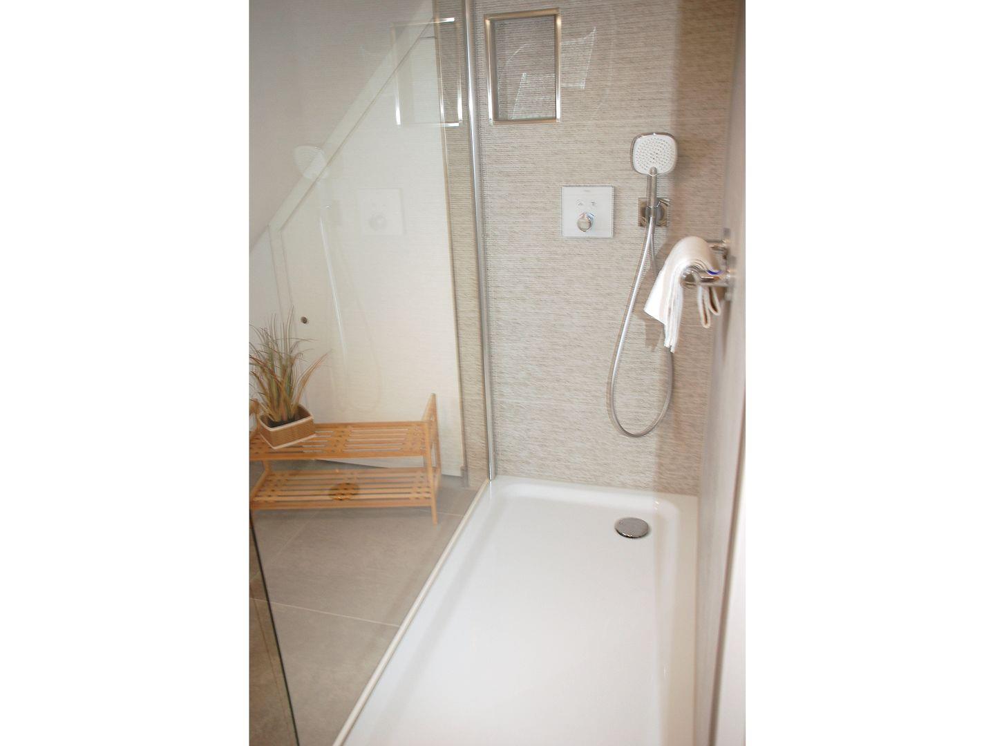 Zur weiteren Ausstattung gehören WLAN, ein modernes Badezimmer, ein eigener PKW-Stellplatz sowie ein abschließbarer Fahrradschuppen. Die familienfreundliche Wohnanlage ist über eine Schrankenanlage ausschließlich Gästen zugänglich – ideal für ungestörte Urlaubstage.
