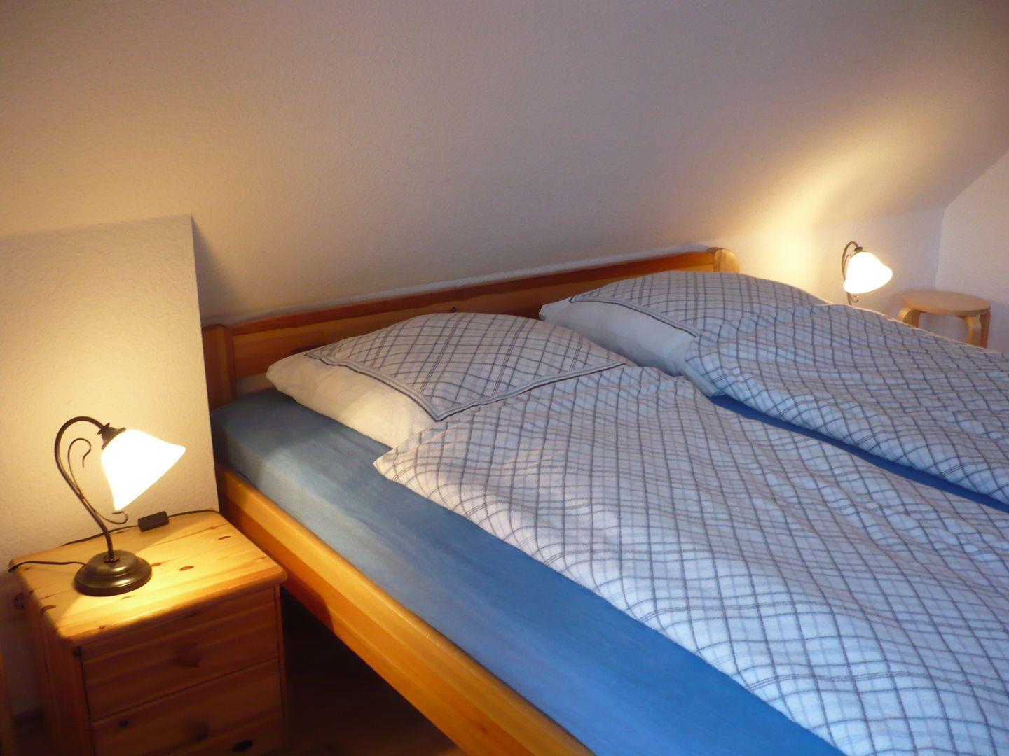 Freuen Sie sich auf ein lichtdurchflutetes Wohnambiente mit gemütlicher Essecke und voll ausgestatteter Küchenzeile. Die möblierte Nord-Westterrasse lädt zu entspannten Abenden ein. Zwei separate Schlafzimmer – eines mit Doppelbett, eines mit zwei Einzelbetten – bieten Komfort für Groß und Klein.