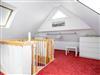 Über eine Wendeltreppe gelangen Sie in den Spitzboden der Eigentumswohnung. In diesem finden Sie ein Schlafzimmer mit Doppelbett, TV sowie einen offenen Ankleidebereich.