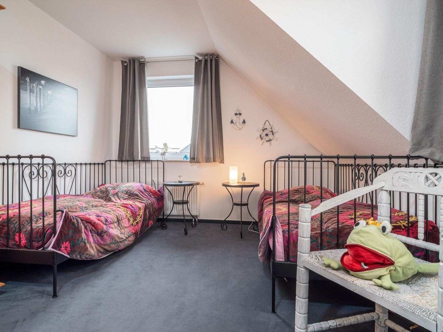 Im Kinderzimmer befinden sich 2 Einzelbetten, sowie ein Kleiderschrank.