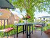 Auf dem kleinen ruhigen Balkon, mit Ausrichtung Südwesten, können Sie sich entspannen und Ihren Urlaub genießen. Zur Ferienwohnung gehört der gemeinschaftliche Garten, ein Gartenhäuschen, in dem Sie ihre Fahrräder unterstellen können. Ein Kugelgrill steht für Ihre Grillabende im Gartenhäuschen bereit.