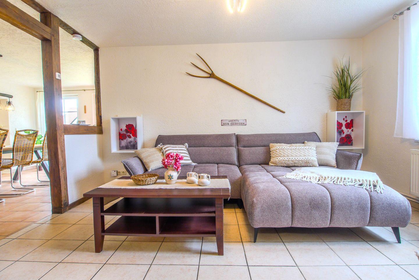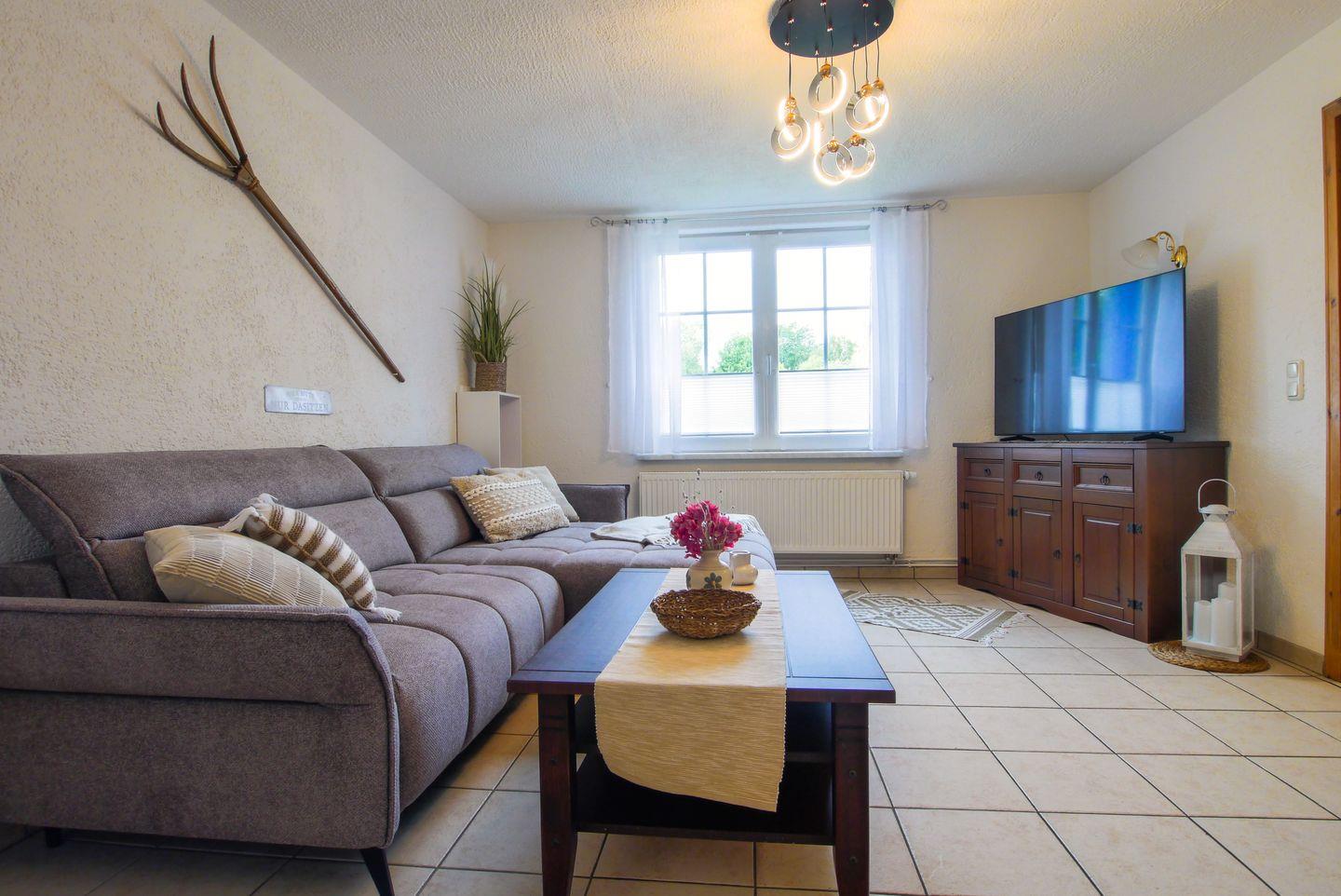 Die Wohnung präsentiert sich gemütlich und einladend, mit einer geschmackvollen Mischung aus rustikalem und modernem Stil.