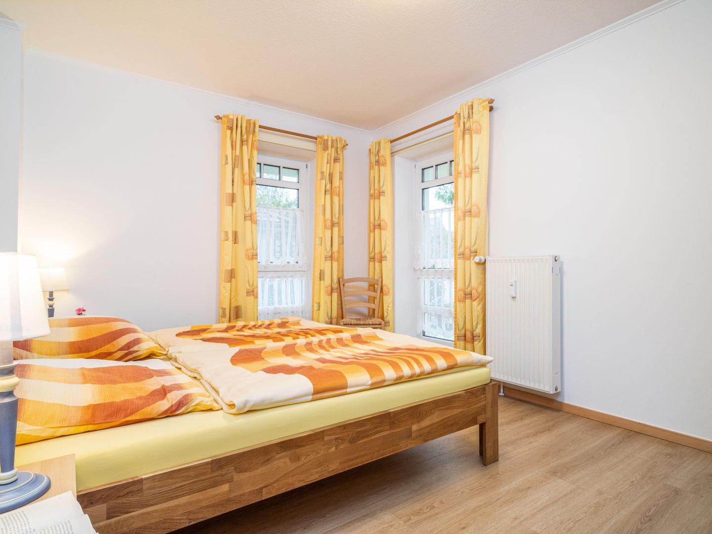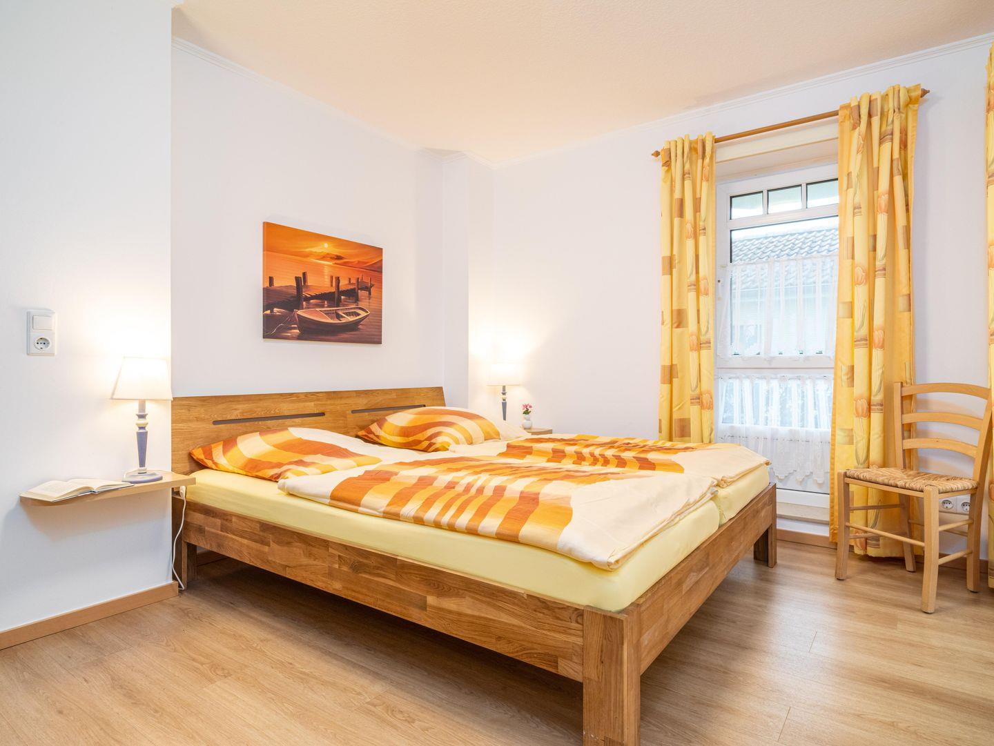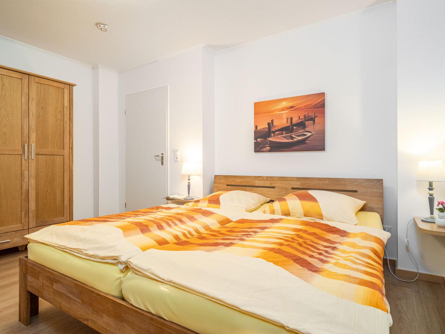 Die Wohnung verfügt über zwei große Schlafzimmer, jeweils mit Doppelbett und Kleiderschrank. Beim hinteren Schlafzimmer gibt es die Möglichkeit eine zweite kleinere Terrasse zu nutzen.
