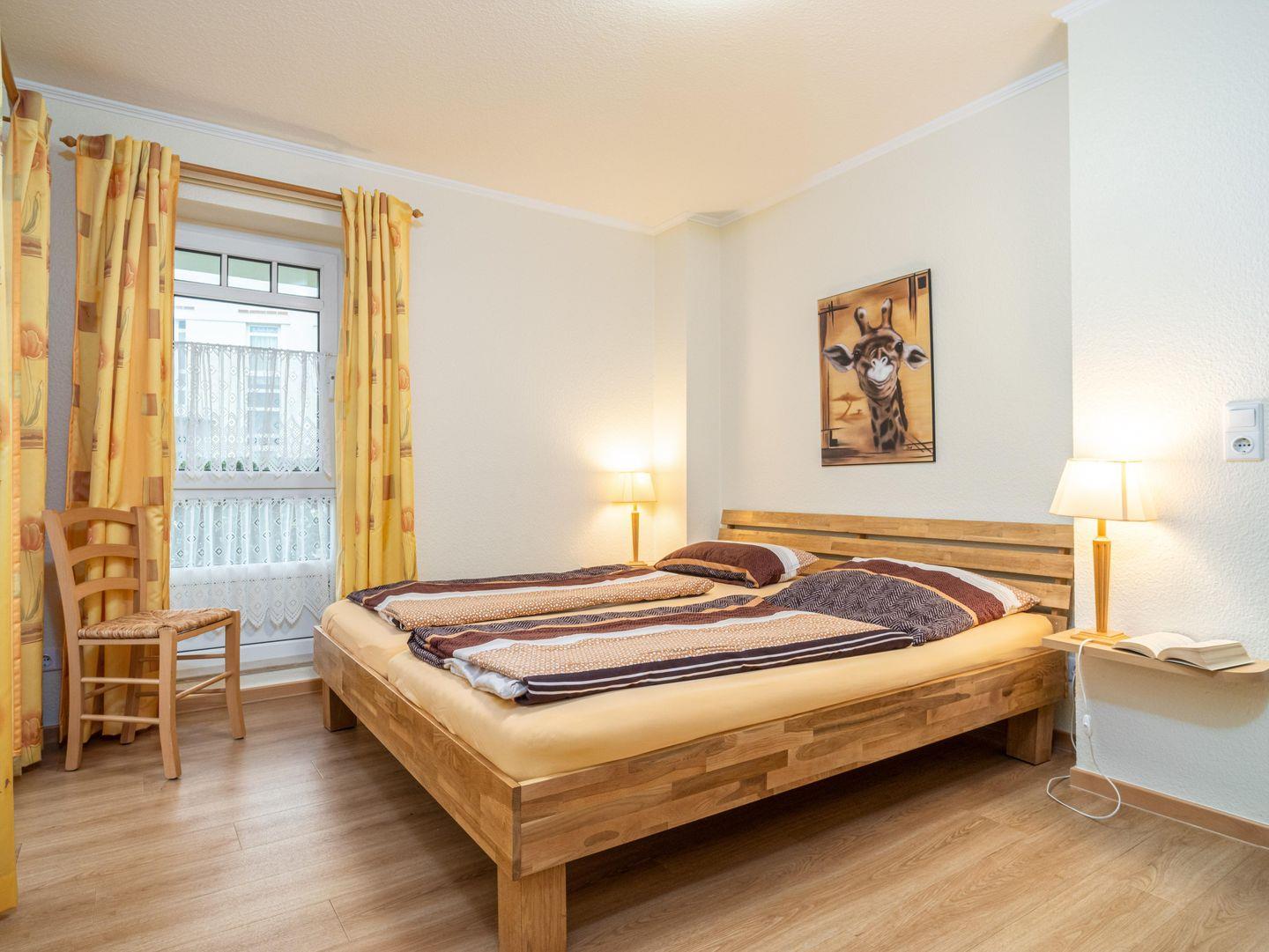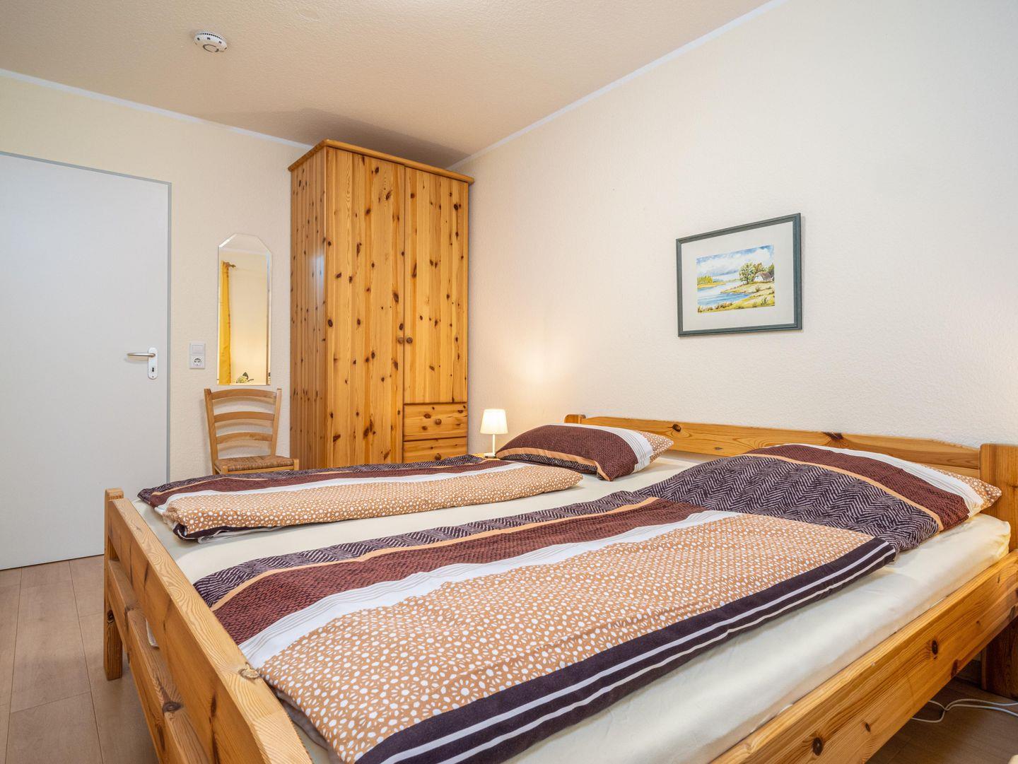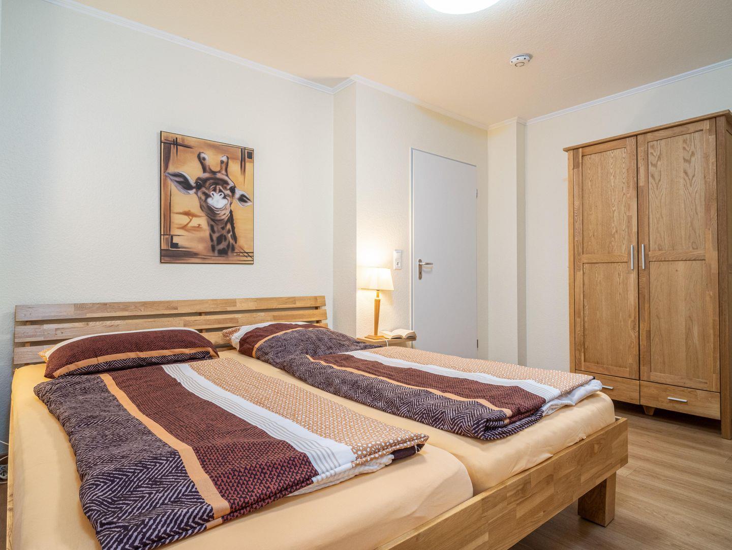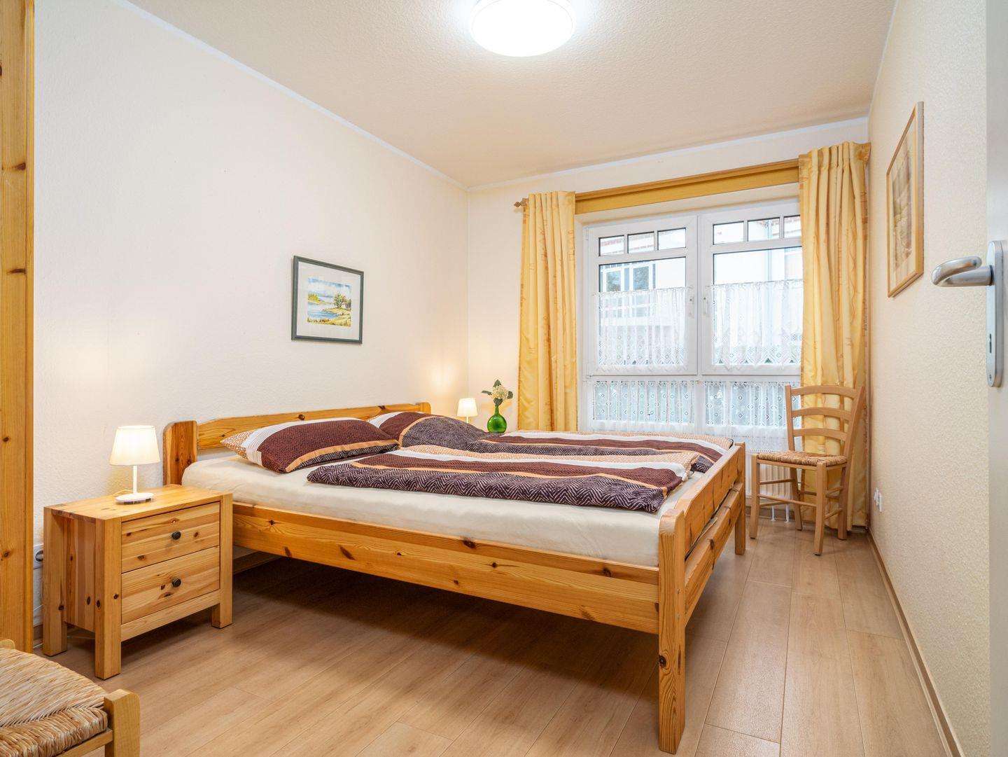 Die Wohnung verfügt über zwei große Schlafzimmer, jeweils mit Doppelbett und Kleiderschrank. Beim hinteren Schlafzimmer gibt es die Möglichkeit eine zweite kleinere Terrasse zu nutzen.