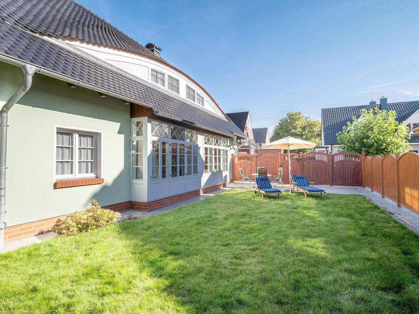 Besonders hervorzuheben ist die große Terrasse mit Gartenmöbeln, auf der Sie die frische Ostsee-Luft genießen und die Seele baumeln lassen können. Hier erwartet Sie auch ein schöner Gartenblick, ideal für entspannte Nachmittage mit einem guten Buch oder einem Glas Wein.