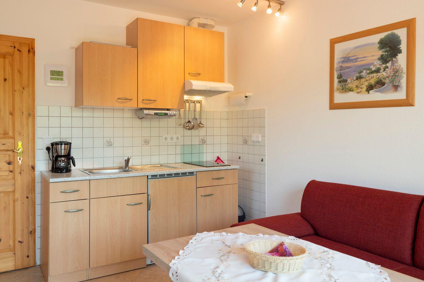 Die Wohnung verfügt über ein gemütliches Schlafzimmer und ein einladendes Wohnzimmer. Die offene Küche ist mit allem ausgestattet, was Sie für Ihre kulinarischen Abenteuer benötigen, einschließlich Ceran-Herd, Kühlschrank mit Gefrierfach, Toaster und Kaffeemaschine. Die durchdachte Ausstattung und die großzügigen Küchenutensilien machen das Kochen zum Vergnügen. Im Wohnzimmer können Sie den Tag entspannt ausklingen lassen, auf der bequemen Sofa-Landschaft oder vor dem digitalen Fernseher. Die moderne Einrichtung sorgt dafür, dass Sie sich sofort wohl und geborgen fühlen.