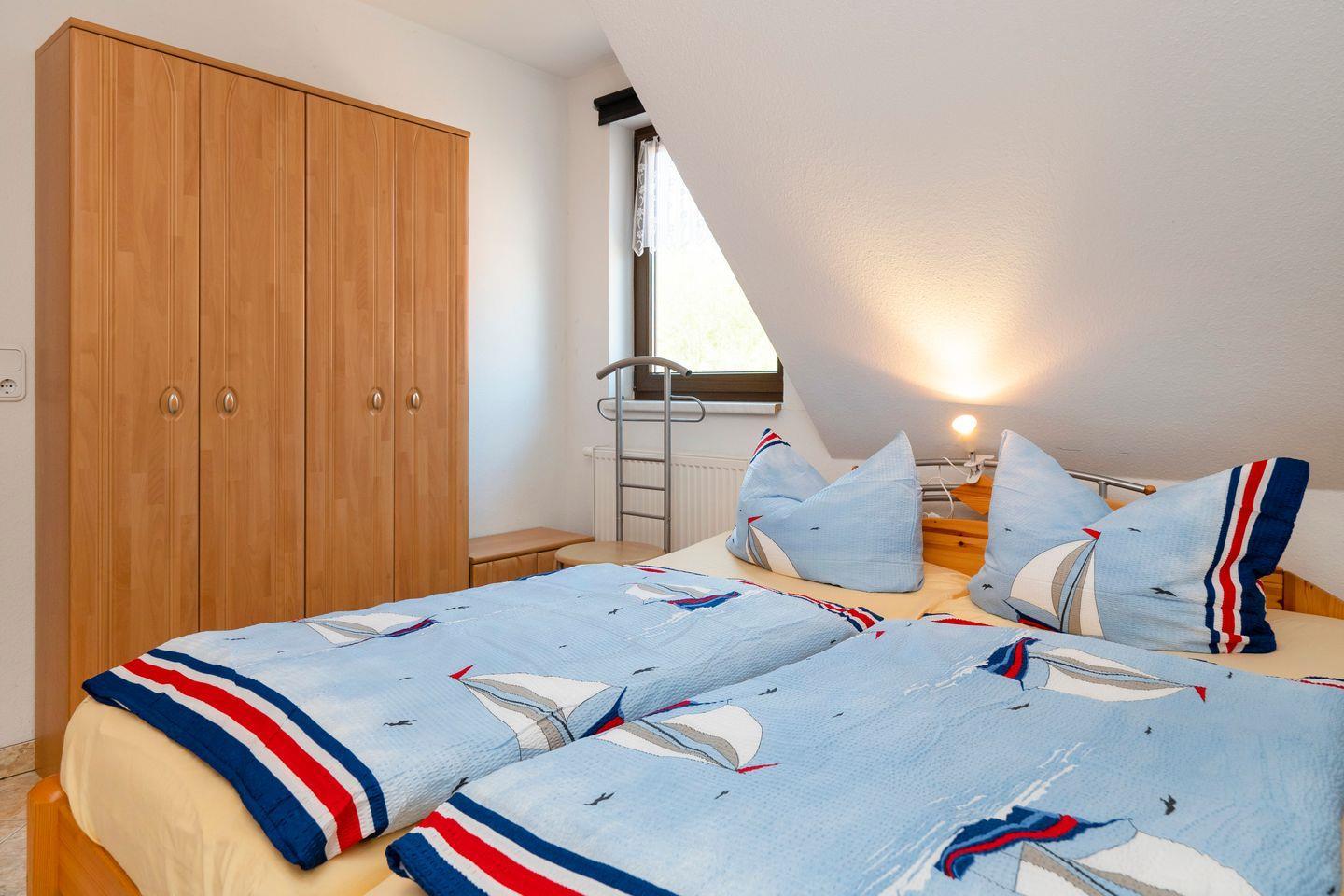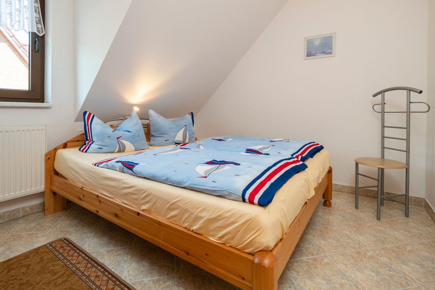 Die Wohnung verfügt über ein gemütliches Schlafzimmer, das einen ruhigen Rückzugsort nach einem erlebnisreichen Tag am Strand bietet. Durch die Fenster strömt viel Tageslicht in die Räume, das eine angenehme Wohnatmosphäre schafft. Das Wohnzimmer ist mit einem Sofa ausgestattet, wo Sie entspannen und den Tag ausklingen lassen können.