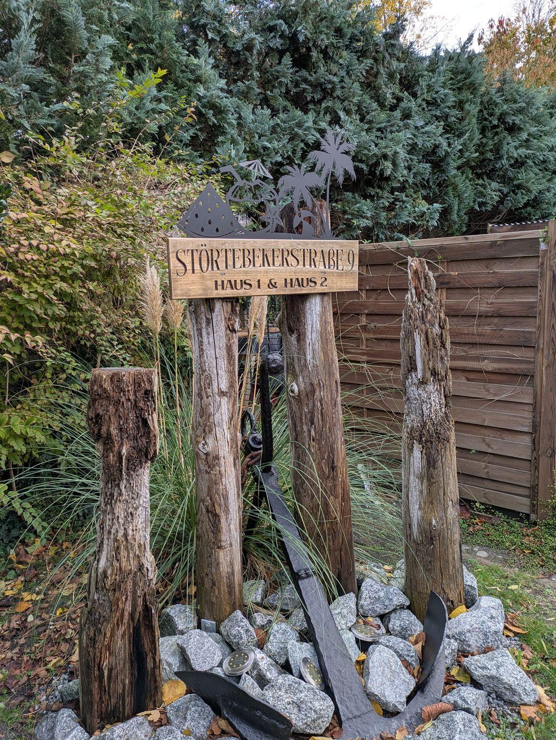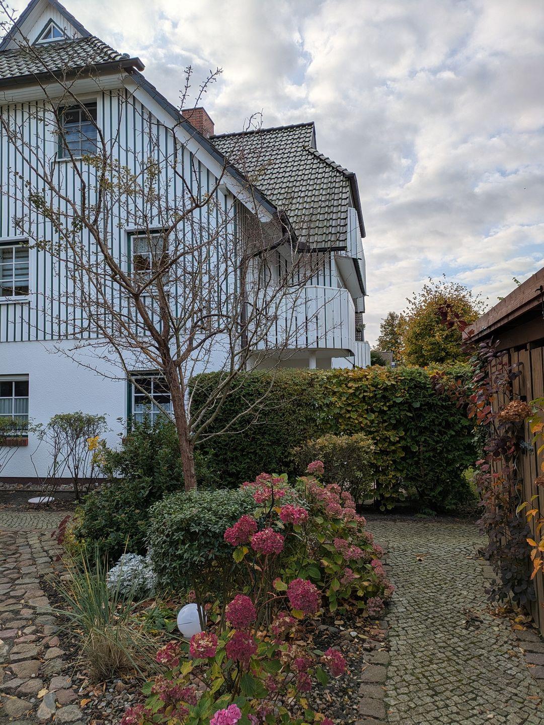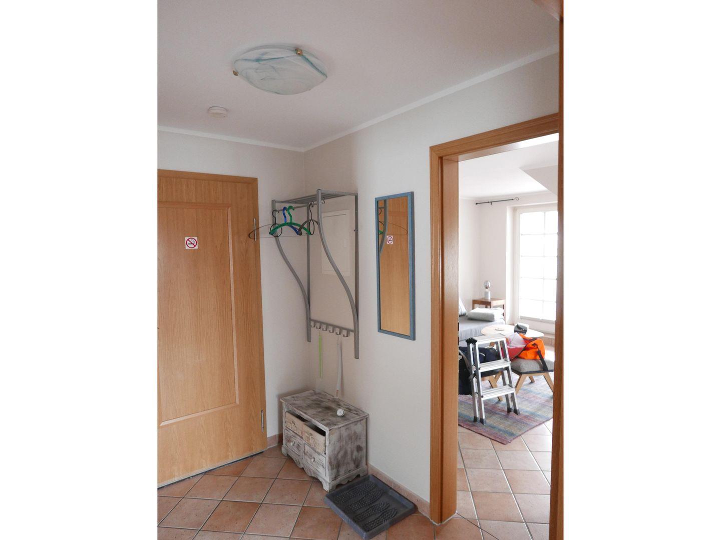 Die 54 m² große Ferienwohnung liegt in einer gepflegten Eigentumsanlage im 2. Stock (Dachgeschoss) des vorderen, in norddeutschem Stil gebauten Gebäudes mit holzverkleidetem Giebel und Holzfenstern.