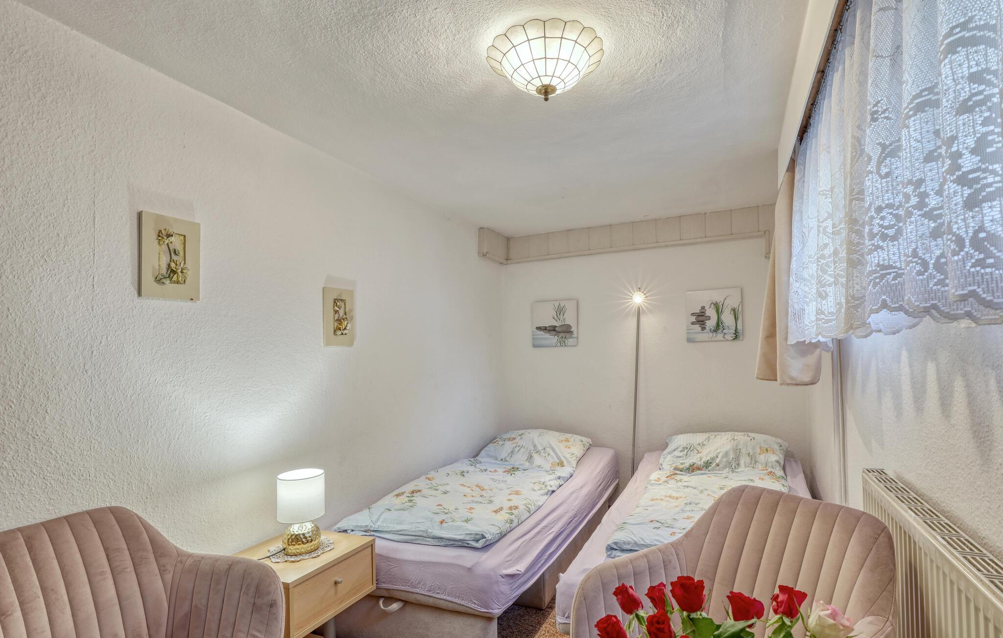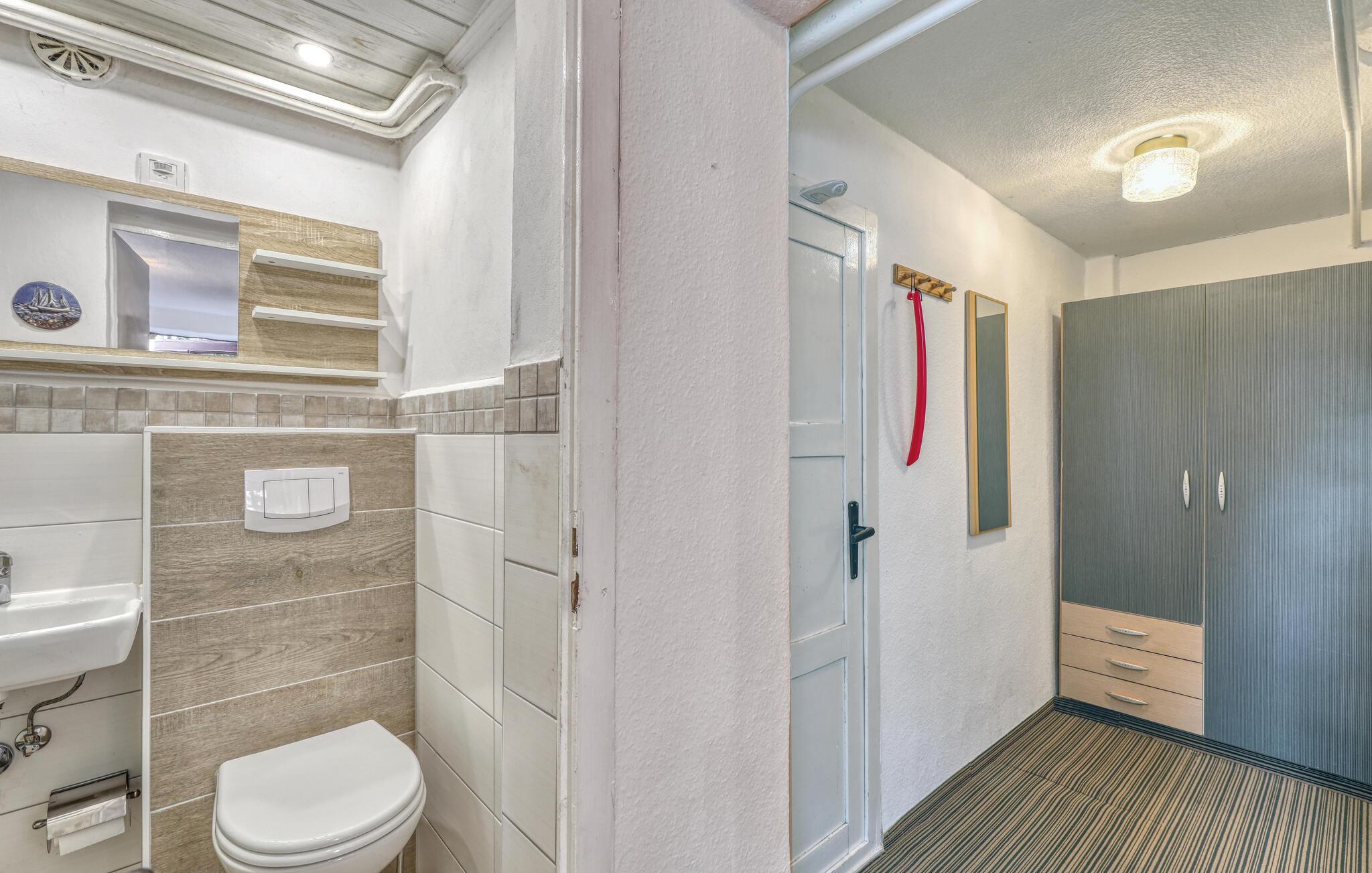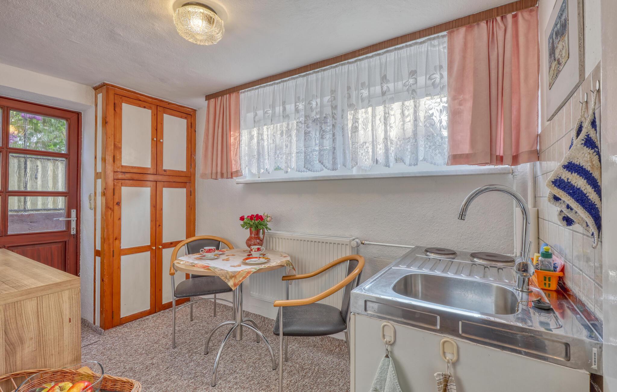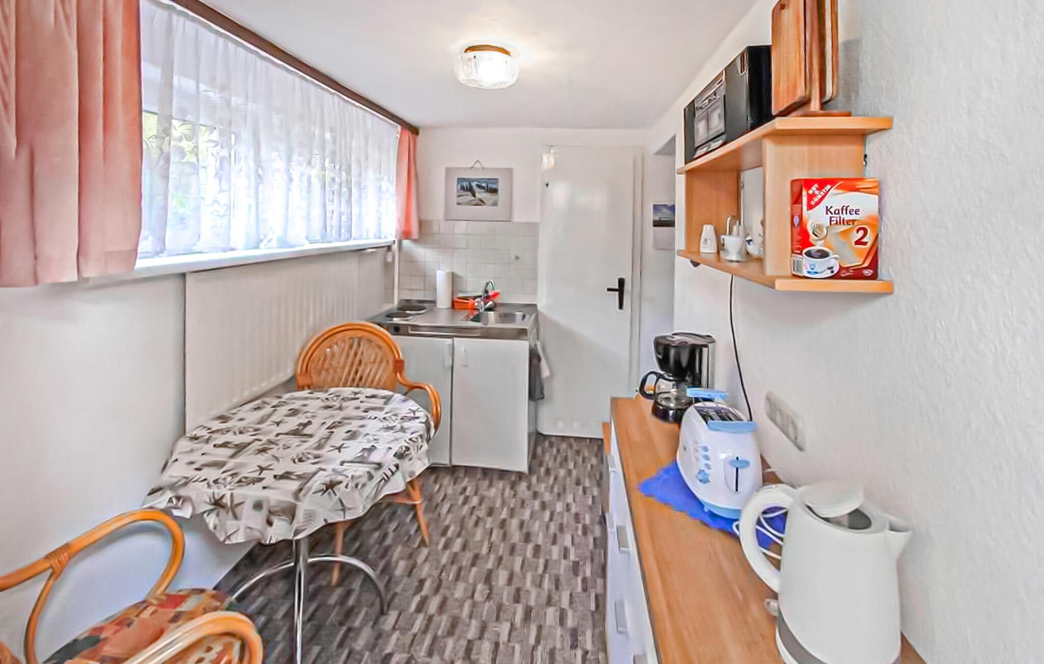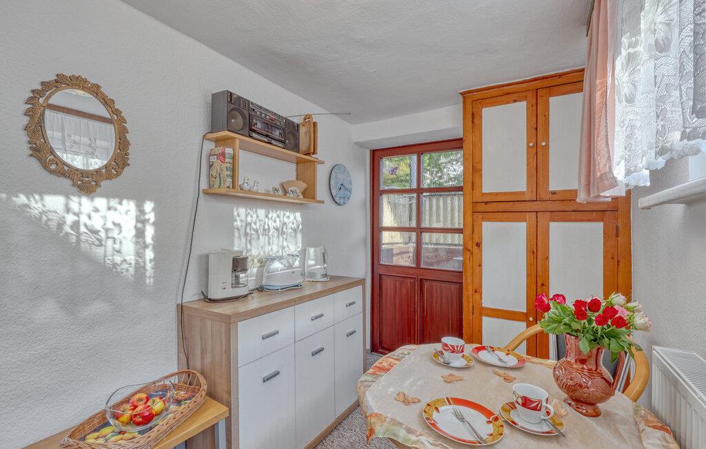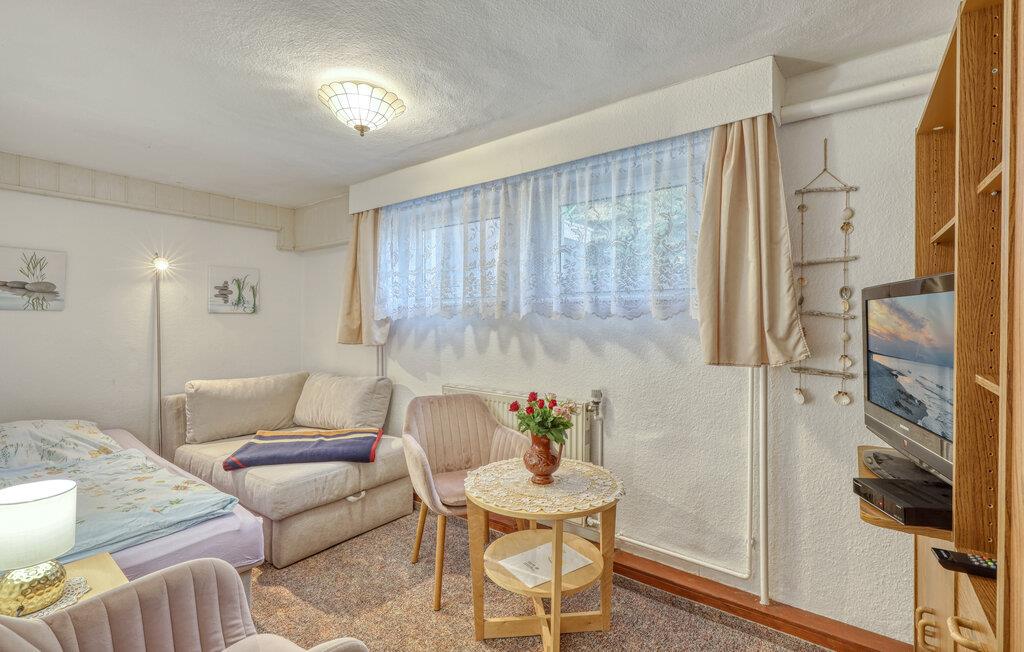 Sommerhuset og en ferielejlighed er beliggende på ejerens 1000 kvm boligejendom i roligt villakvarter. Østersøstranden, supermarked, restauranter og cykelstier inden for 500 m. Hver bolig har en parkeringsplads, terrasse eller udendørs opholdsområde, grill og cykelkælder til rådighed. WiFi er også tilgængeligt. Den lille ferielejlighed med separat indgang, som senest blev moderniseret i 2022, ligger i husets kælderetage. Den er enkelt udstyret med: kombineret stue/soveværelse (2 polstrede liggestole, opholdsområde, fladskærms-tv, radio), tekøkken (elkomfur, køleskab med fryser, spiseplads, diverse køkkenmaskiner), renoveret badeværelse (bruser/ toilet), centralvarme . Der er også en udendørs terrasse med havemøbler og en grill. Den samlede pris inkluderer: slutrengøring, vand og energiforbrug. Du kan medbringe dit eget sengelinned og håndklæder eller leje dem. Zinnowitz er underlagt turistskat. Østersøferiestedet Zinnowitz med sin brede sandstrand og dens promenade fyldt med smukke villaer er en af de smukkeste badebyer på øen Usedom. Talrige restauranter, indkøbsmuligheder, en surf- og sejlerskole, et veludbygget netværk af cykelstier samt tennisbaner og et termisk spa giver mulighed for en varieret ferie. Spa-/kulturprogrammer finder sted regelmæssigt om sommeren. Højdepunktet er Vineta Festivalen, som opføres på friluftsscenen hele sommeren. Stedet har også en 300 m lang mole med dykkergondol. Herfra kan du tage bådture til andre badebyer så langt som til Polen.