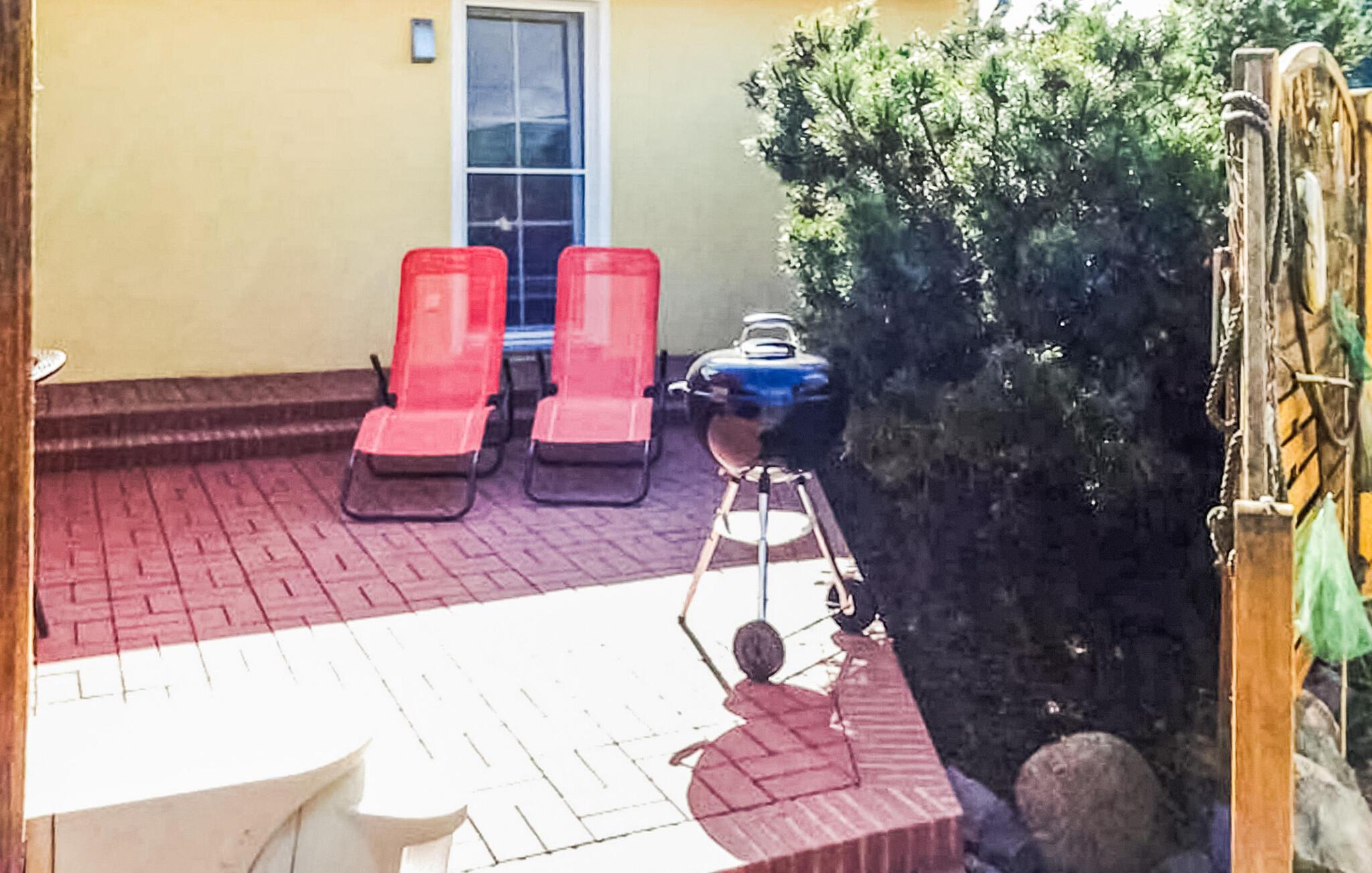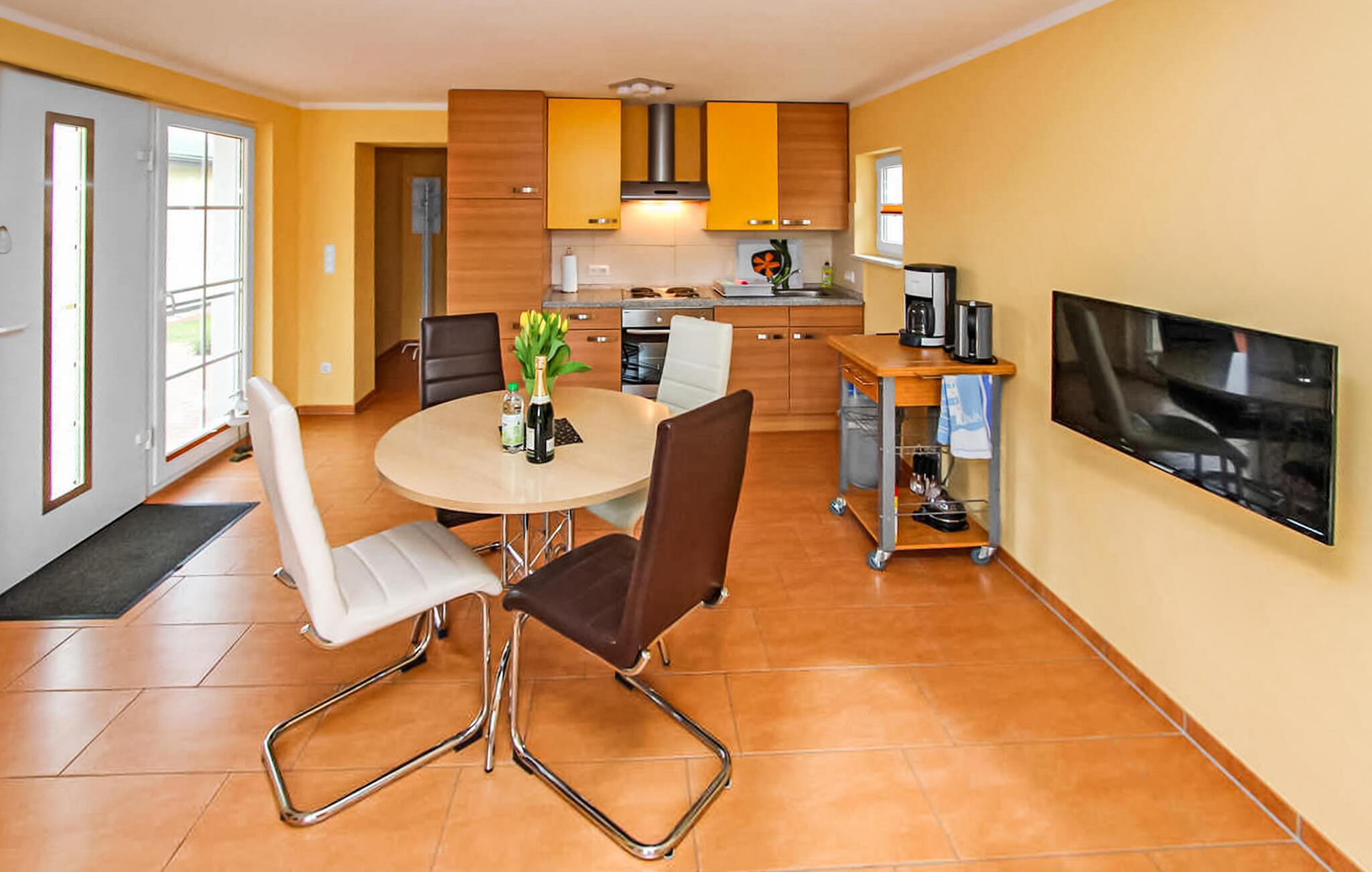 Det ene af to sommerhuse, der er beliggende hver for sig på ejerens 2.500 kvadratmeter, smukt anlagte boligejendom med central beliggenhed. Det er omkring 10 minutters gang til Østersøstranden. Butikker og restauranter ligger inden for få hundrede meter. Dette feriehus er udstyret med en stue (polstrede møbler, fladskærms-tv, pejs), to soveværelser (1 x som et sammenhængende værelse med en dobbeltseng, 1 x 2 enkeltsenge), et åbent køkken (elkomfur med ovn , køleskab med fryserum, spisebord, diverse køkkenmaskiner) samt badeværelse med brus/toilet. Hvert hus har to udendørs siddepladser, der vender modsatte retninger. Det betyder, at du kan nyde solen både om morgenen og om aftenen. Sommerhusene opvarmes med elvarmer (natvarmer). Internet (WLAN) er også tilgængeligt. Der er også liggestole, en grill, opbevaringsplads til cykler og en parkeringsplads til rådighed udenfor. Den samlede pris inkluderer slutrengøring, sengelinned, håndklæder samt vand- og energiforbrug. Østersøferiestedet Zinnowitz er underlagt en turistskat. BEMÆRK: Ejendommen er ikke egnet til børn under 10 år! Østersøferiestedet Zinnowitz med sin brede sandstrand og dens promenade fyldt med smukke villaer er en af de smukkeste badebyer på øen Usedom. Talrige restauranter, indkøbsmuligheder, en surf- og sejlerskole, et veludbygget netværk af cykelstier samt tennisbaner og et termisk spa giver mulighed for en varieret ferie. Spa-/kulturprogrammer finder sted regelmæssigt om sommeren. Højdepunktet er Vineta Festivalen, som opføres på friluftsscenen hele sommeren. Stedet har også en 300 m lang mole med dykkergondol. Herfra kan du tage bådture til andre badebyer så langt som til Polen.