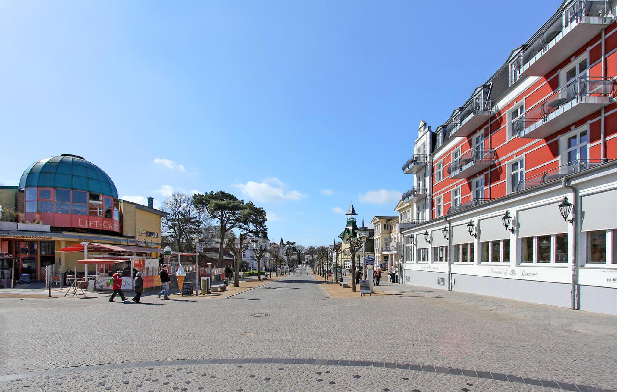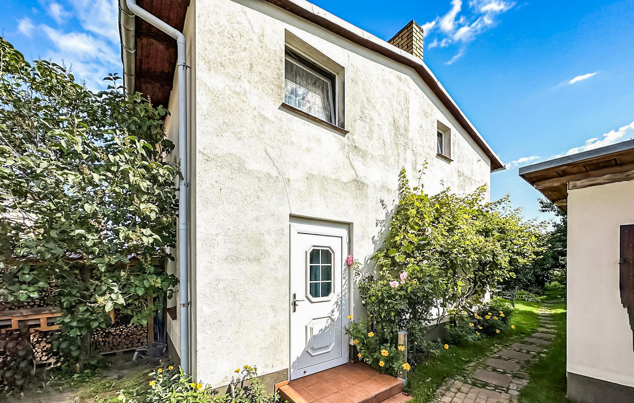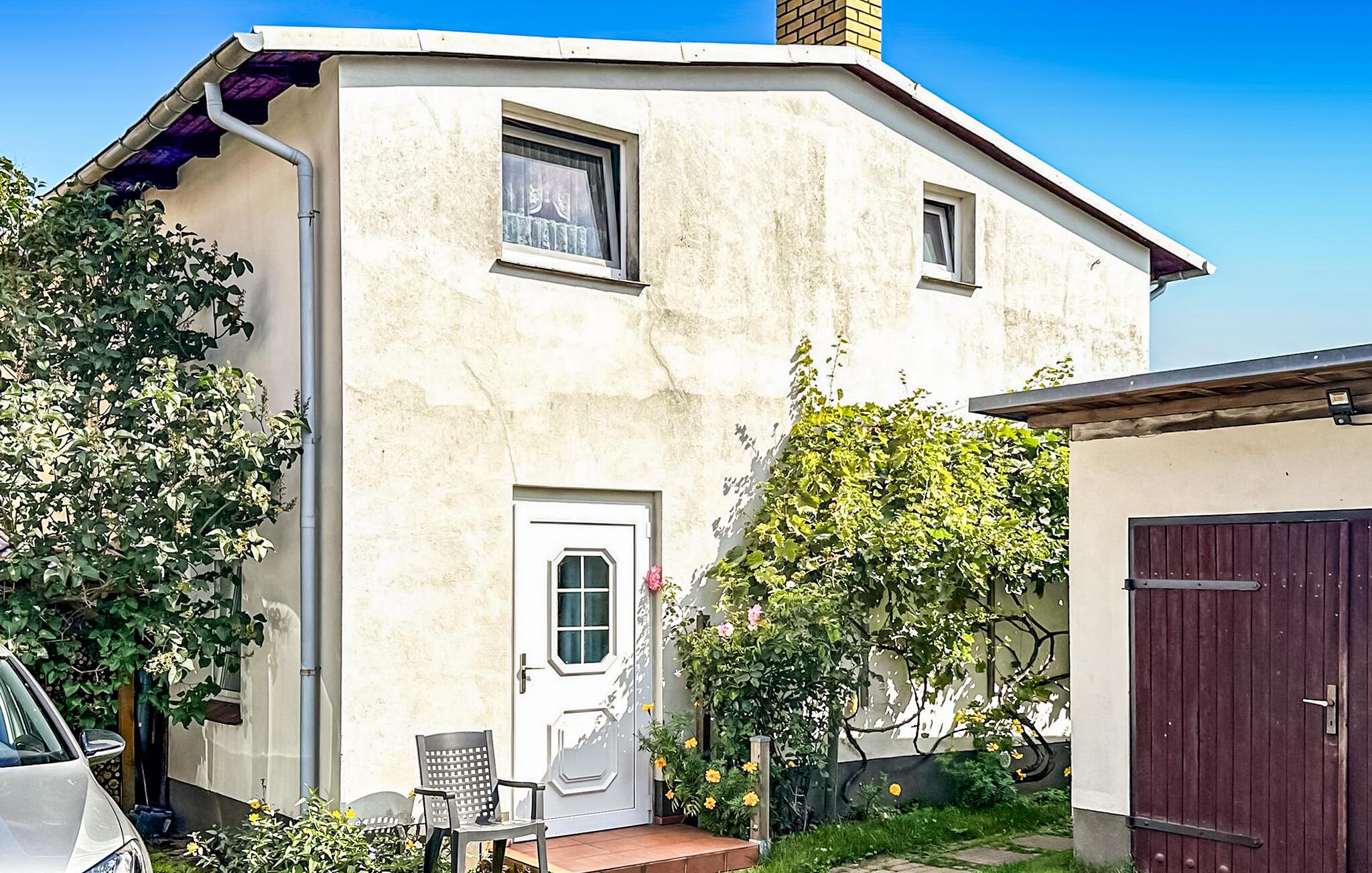 Denne ferielejlighed på cirka 16 kvm til maksimalt 2 personer ligger i stueetagen af en beboelsesbygning på ejerens 940 kvm store grund i et roligt boligområde med central beliggenhed. Østersøstranden ligger cirka 800 m væk, og restauranter, caféer og butikker ligger inden for 500 m. Den har en kombineret stue/soveværelse (2 polstrede liggestole, fladskærms-tv, radio/cd-afspiller, spiseplads), et tekøkken (elektrisk kogeplade, køleskab med frostboks, diverse køkkenapparater) og et badeværelse med bruser/toilet. Lejligheden opvarmes med elektrisk varme. Der er et møbleret udendørs siddeområde med grillfaciliteter og parkering. Den samlede pris inkluderer slutrengøring, vand og elforbrug. Sengelinned og håndklæder kan medbringes eller lejes. Kæledyr er ikke tilladt. Østersøbyen Zinnowitz er en statsanerkendt kurby og er derfor underlagt en kurafgift (betales lokalt).