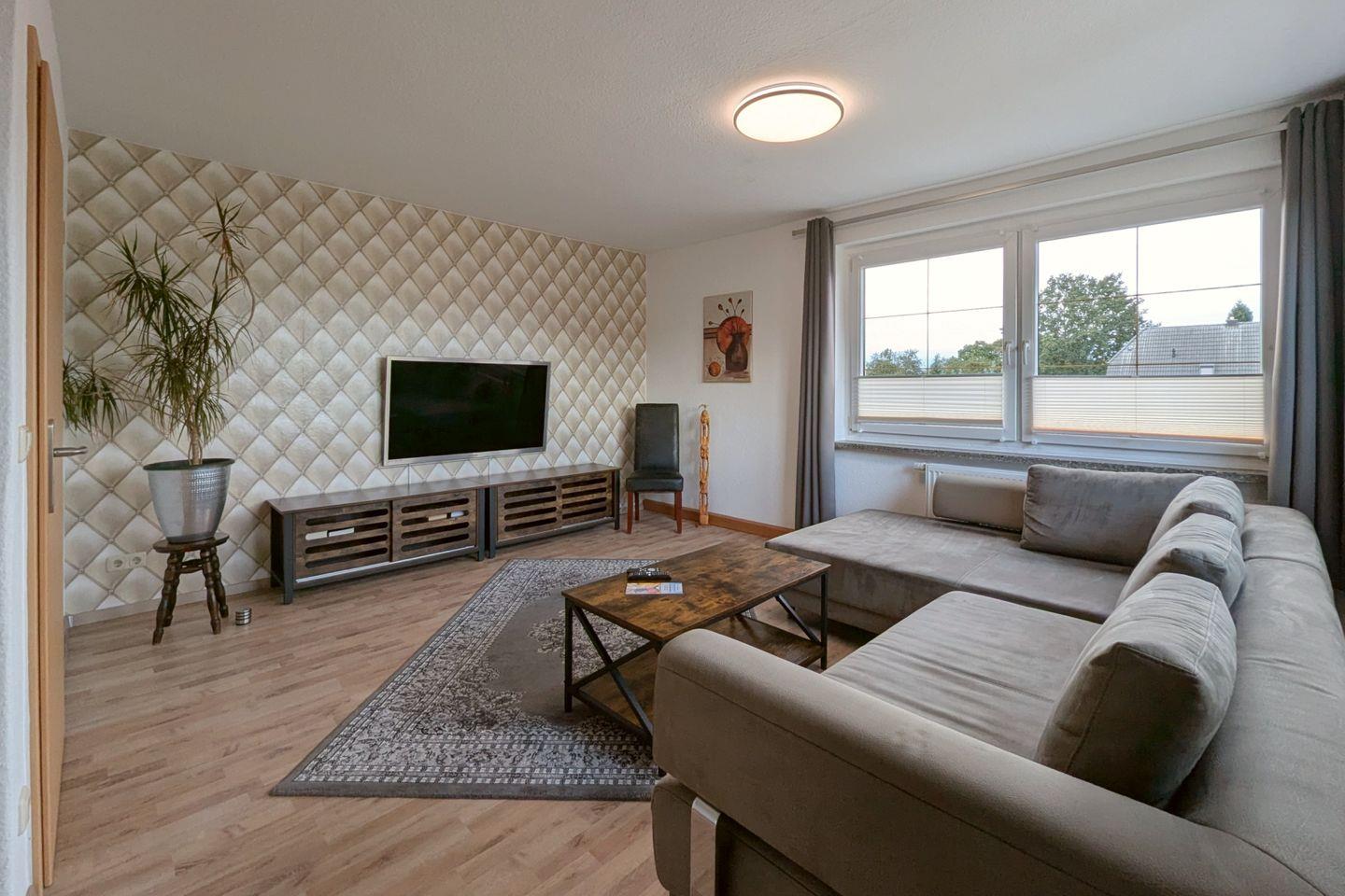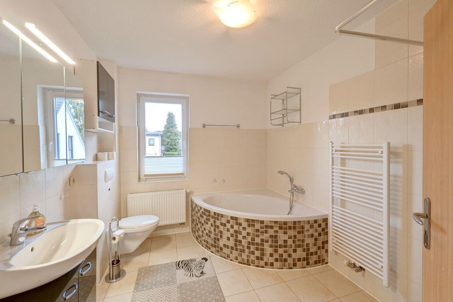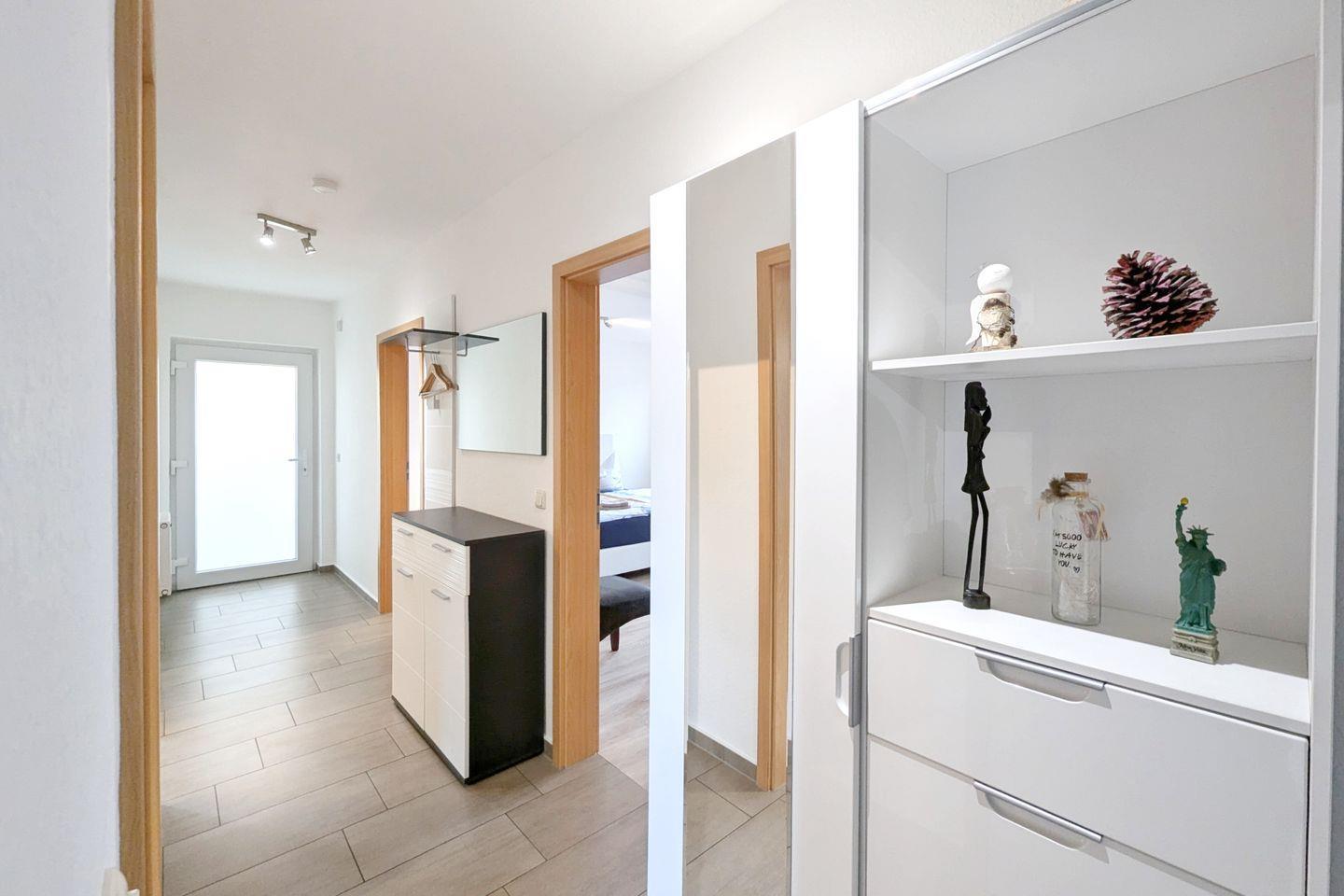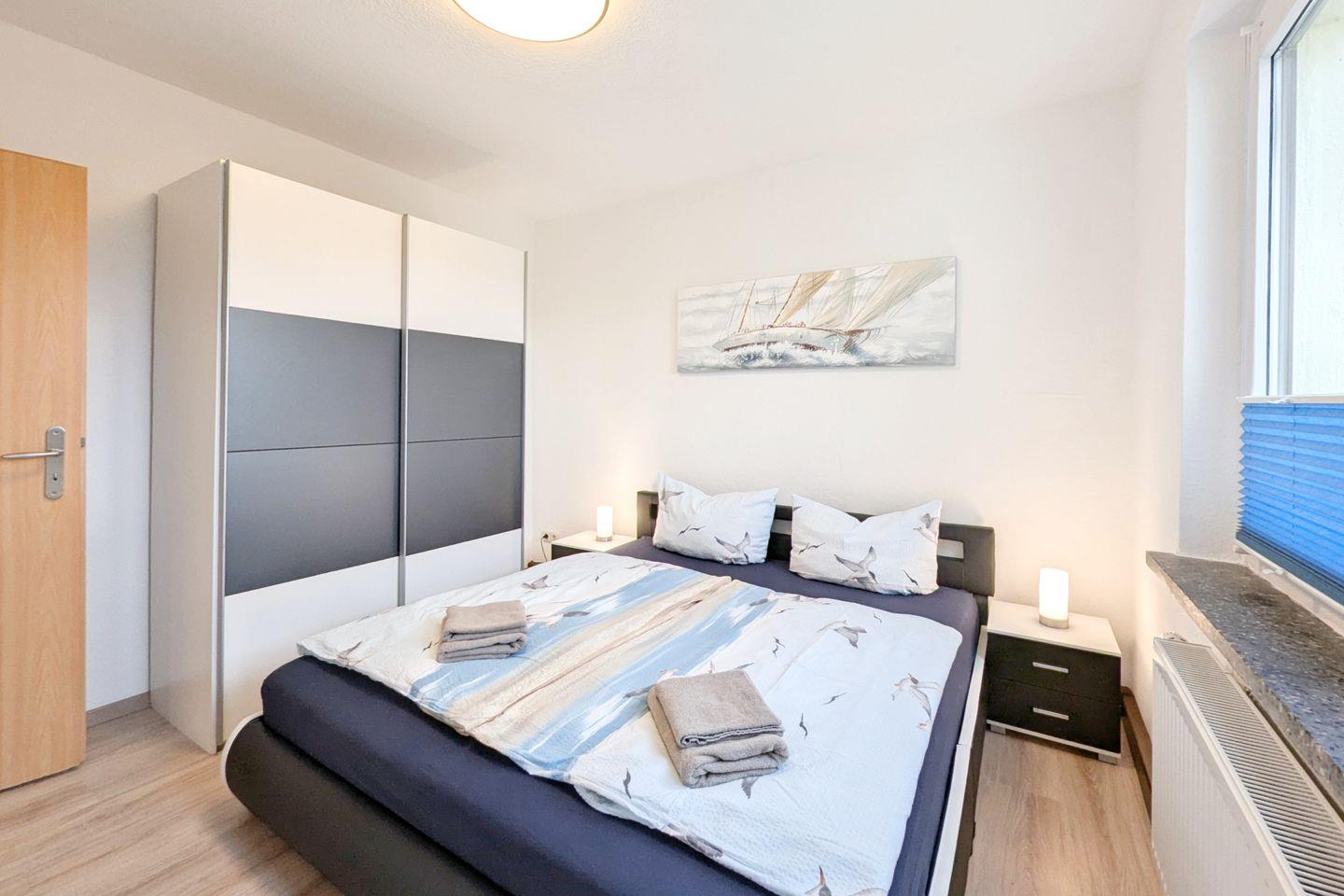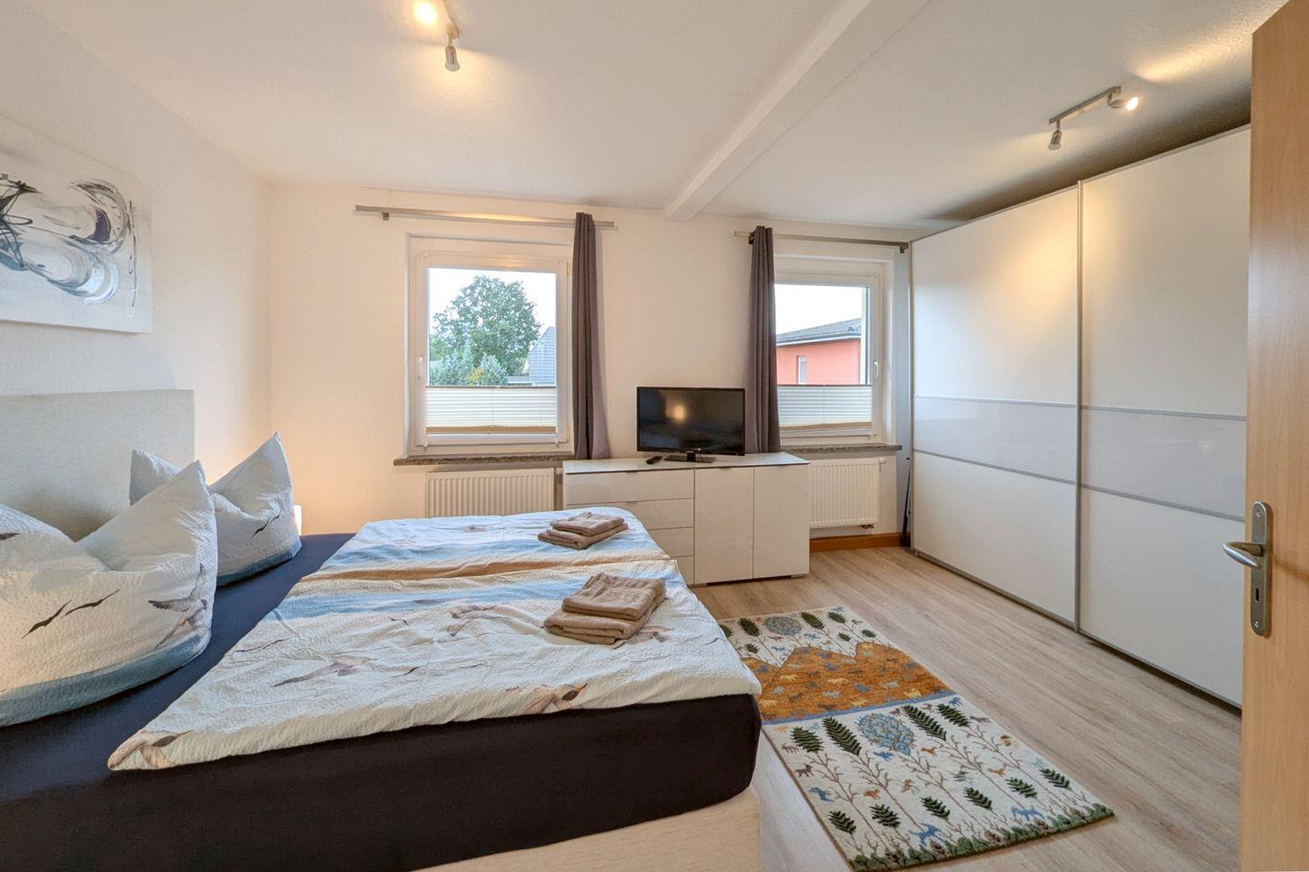Zwei geschmackvoll eingerichtete Schlafzimmer bieten Ihnen einen erholsamen Schlaf. Die Schlafzimmer sind mit hochwertigem Laminatboden ausgestattet und garantieren durch angenehme Ruhe einen entspannten Schlaf. Darüber hinaus bietet die Wohnung ein modernes Badezimmer mit bodengleicher Dusche und Badewanne, in dem Sie nach einem aufregenden Tag in der Natur wunderbar entspannen können.