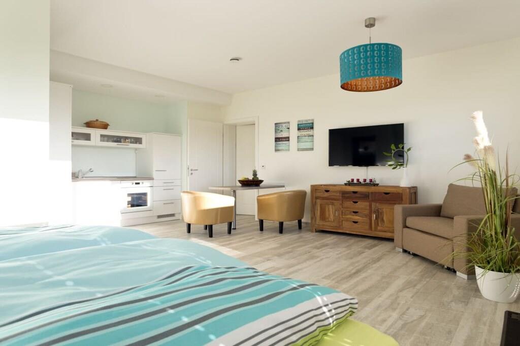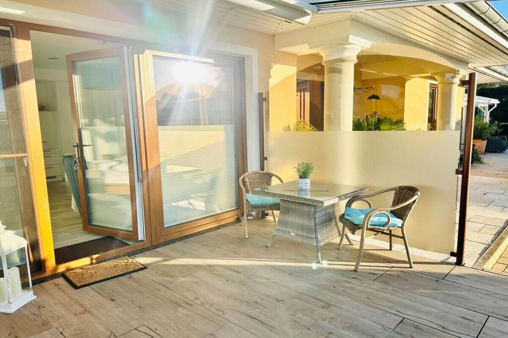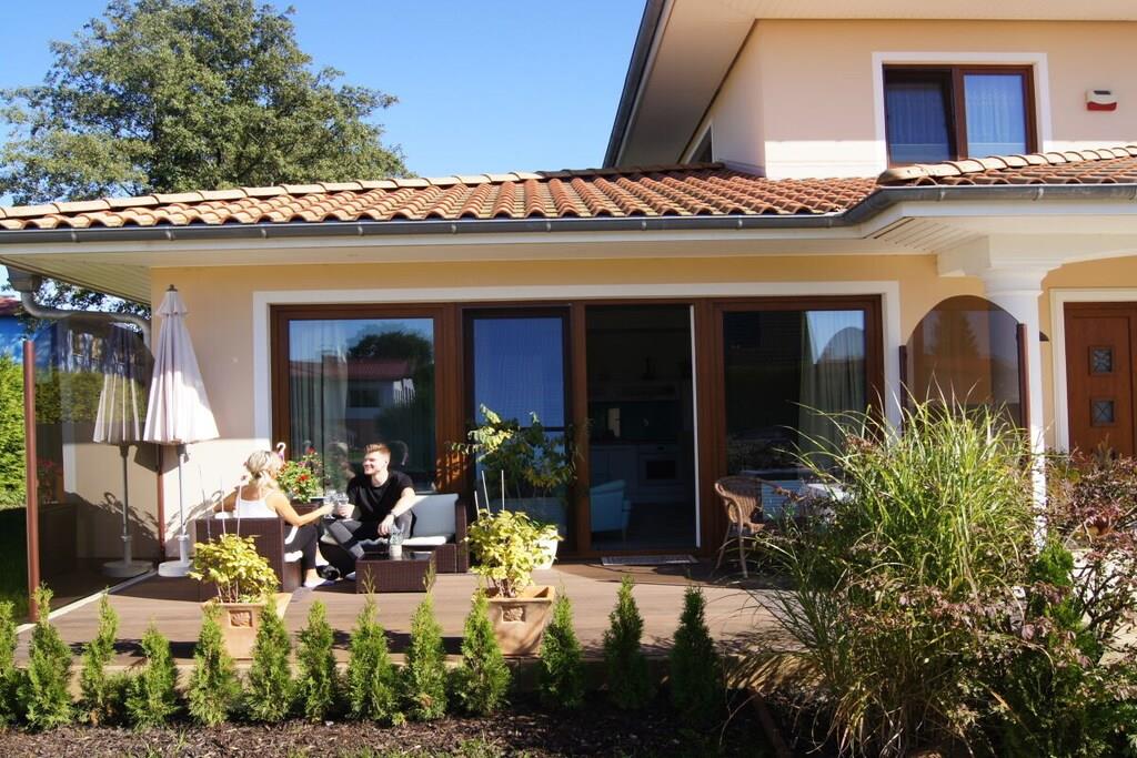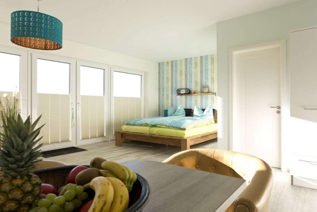 Herzlich Willkommen in Ihrer Ferienwohnung Alexa. Unsere komfortable Ferienwohnung bietet Ihnen ausreichend Platz für 2 Personen oder je nach Bedarf kann auch eine Aufbettung gestellt werden. Im kombinierten Wohn- Schlafbereich befindet sich ein geräumiges Doppelbett mit einer durchgehenden Liegefläche, welche die Bequemlichkeit noch durch einen Gel - Topper verstärkt. Für den erholsamen Schlaf erwarten Sie Verdunkelungsgardinen, die vor zu viel Sonne schützen und kühlend wirken. Zudem sind die Fenster noch zusätzlich mit Plissees und Fliegenschutzgitter ausgestattet. Im kombinierten Wohnbereich erwarten Sie 2 bequeme Sessel, ein großer Flachbildfernseher mit Sat TV sowie einem Radio. Die integrierte Küche ist hochwertig mit Geschirrspüler, Kühlschrank, Kaffeemaschine, Backofen, Toaster und Wasserkocher eingerichtet. Ebenfalls können Sie dort gemütlich am Esstisch frühstücken. Das geräumige Bad ist mit einer Ganzglasdusche, WC und einem Fenster ausgestattet. Es ist ein Fön vorhanden, ein Kosmetikspiegel und moderne Badschränke. DieTerrassenfensterfront sorgen für einen hell und Licht durchfluteten Raum. Als Besonderheit ist die große Sonnenterrasse mit ca. 20 qm zu anzusehen, dem sich Ihr eigener Garten zur Nutzung anschließt. Ein zur Wohnung zugehöriger PKW- Stellplatz befindet sich unmittelbar vor dem Haus und kann kostenlos genutzt werden.
