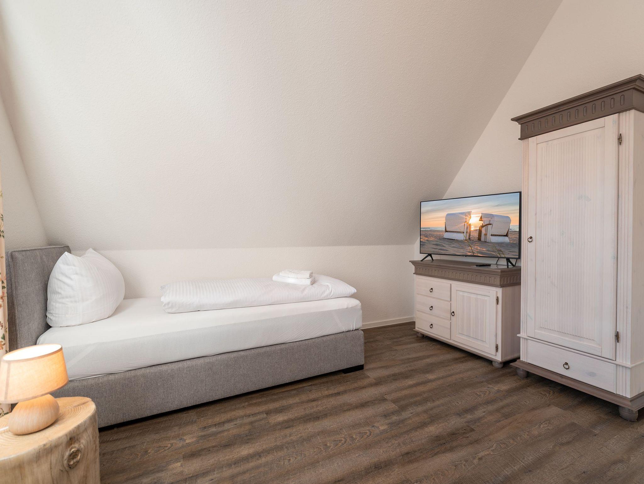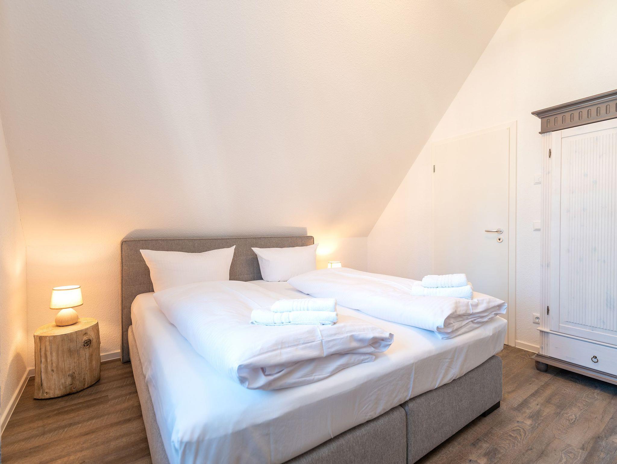 • Zwei Schlafzimmer bereiten mit hochwertigen Betten ? einem Boxspring-Doppelbett im einen und zwei Boxspring-Einzelbetten im anderen Zimmer ? erholsame Nächte.