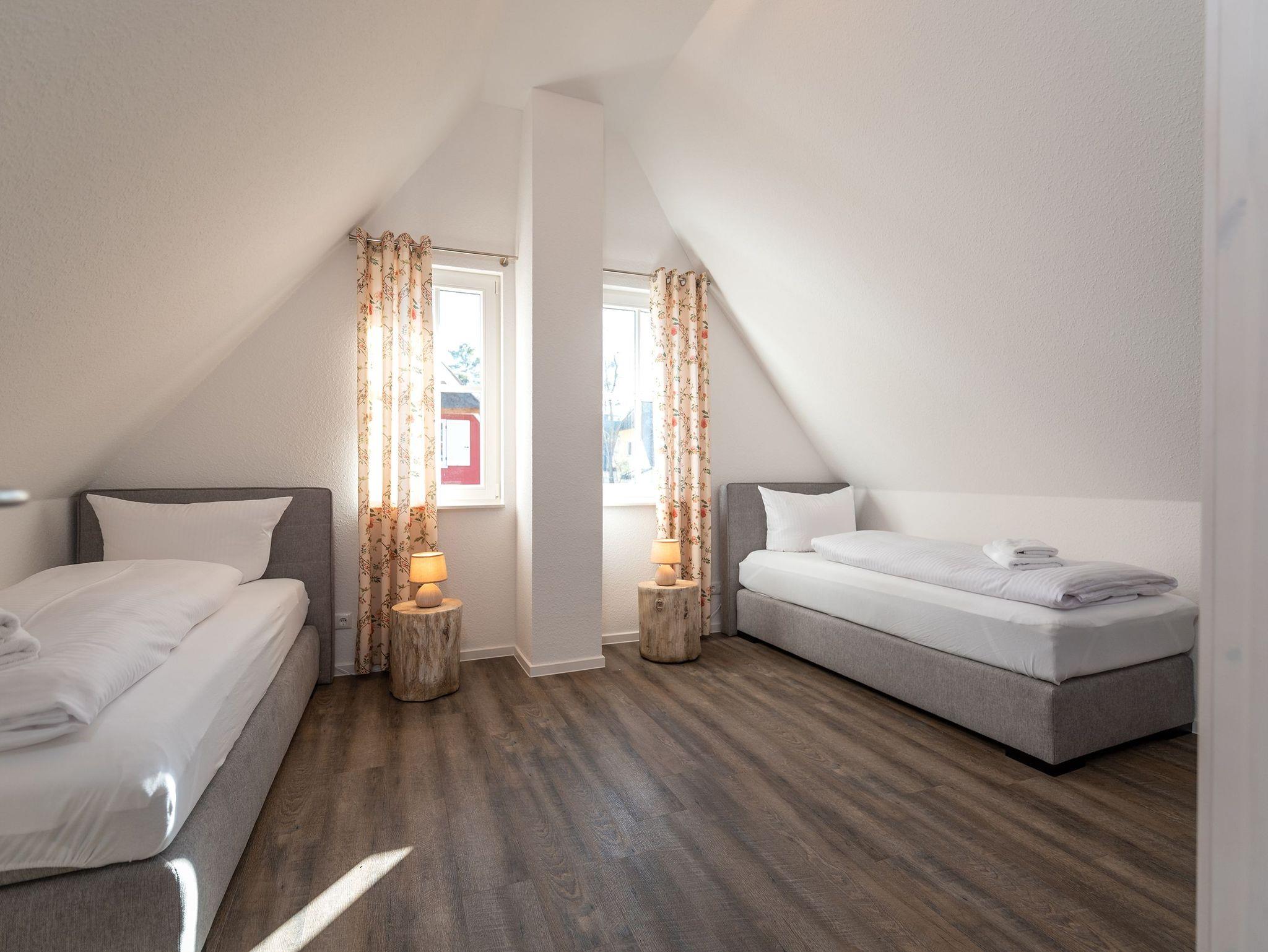 • Zwei Schlafzimmer bereiten mit hochwertigen Betten einem Boxspring-Doppelbett im einen und zwei Boxspring-Einzelbetten im anderen Zimmer erholsame Nächte.