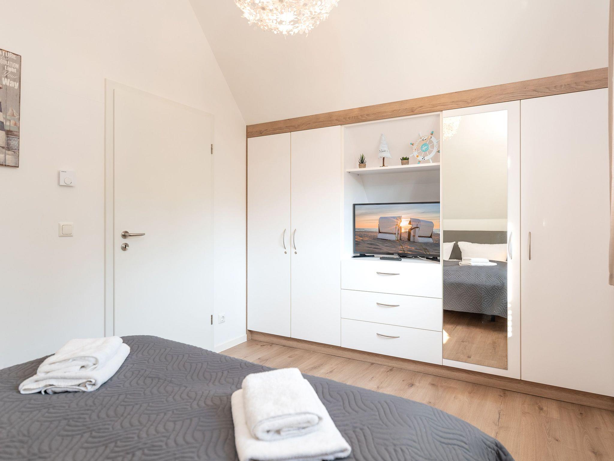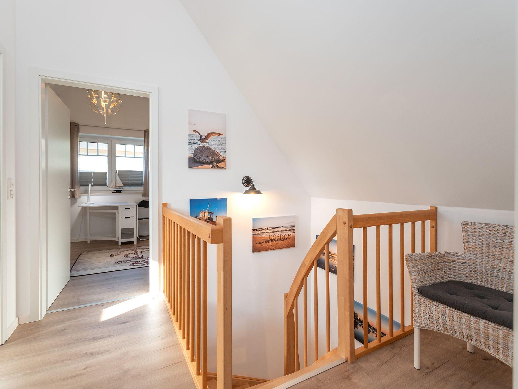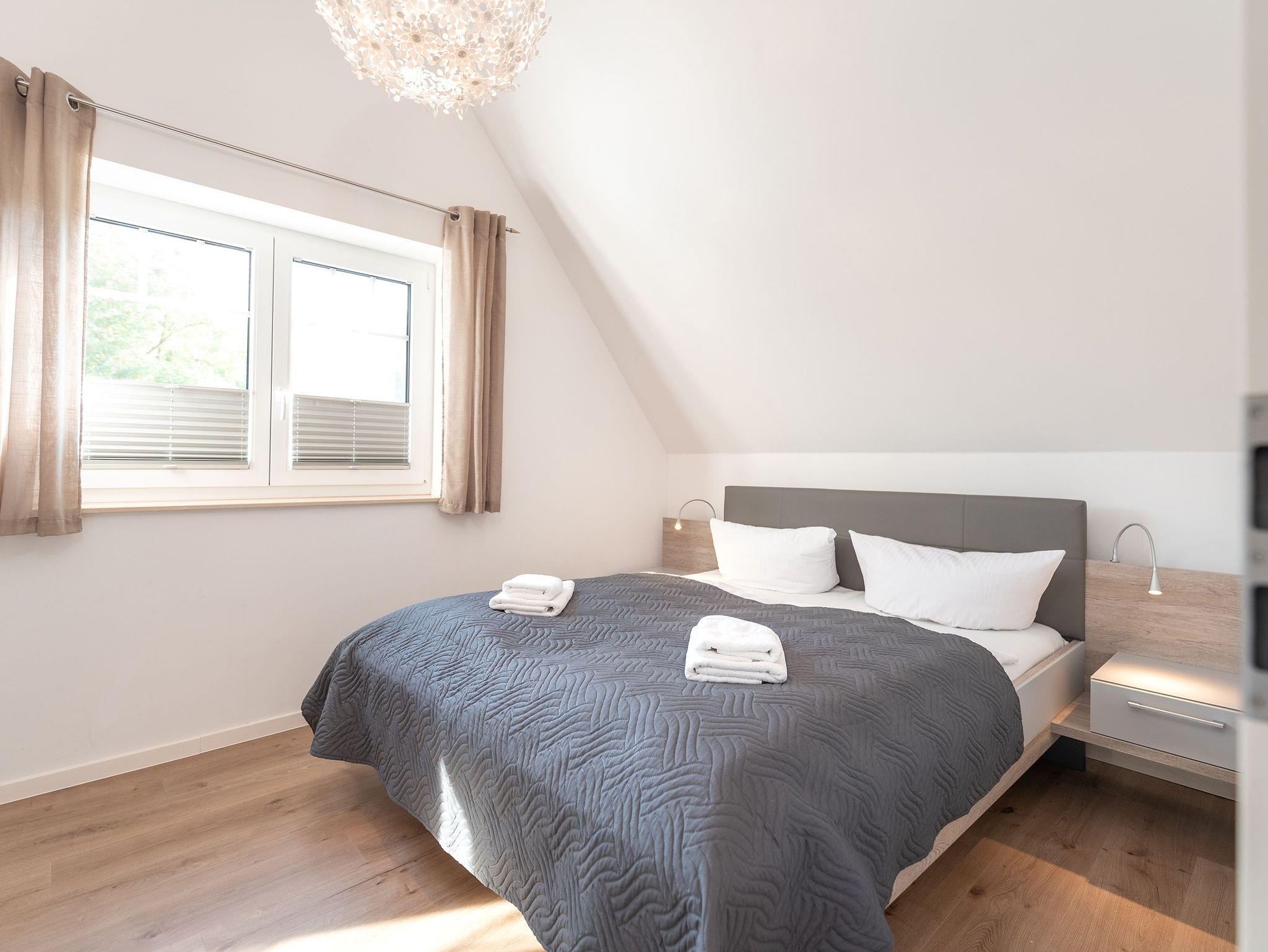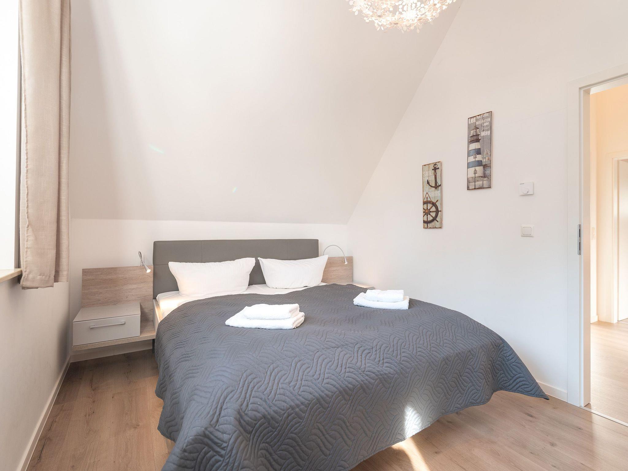 Im Obergeschoss finden Sie zwei liebevoll eingerichtete Schlafzimmer: Das Hauptzimmer verzaubert mit einem komfortablen Doppelbett, während das zweite Zimmer zwei Einzelbetten bereithält, die sich bei Bedarf in ein Doppelbett verwandeln lassen. Somit bietet das Baltic Blue ausreichend Platz für 4 Erwachsene oder für Familien mit bis zu 4 Kindern.