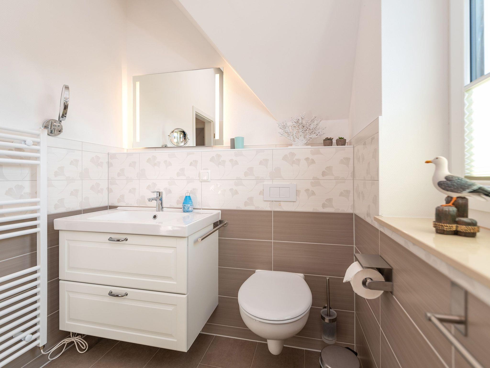 Für Ihr Wellness-Erlebnis sorgen zwei exklusive Bäder. Im Erdgeschoss lädt eine moderne Dusche zum Frischmachen ein, gefolgt von entspannenden Momenten in der hauseigenen Sauna. Das Badezimmer im Obergeschoss verführt mit einer geräumigen Badewanne perfekt für ein duftendes Schaumbad.