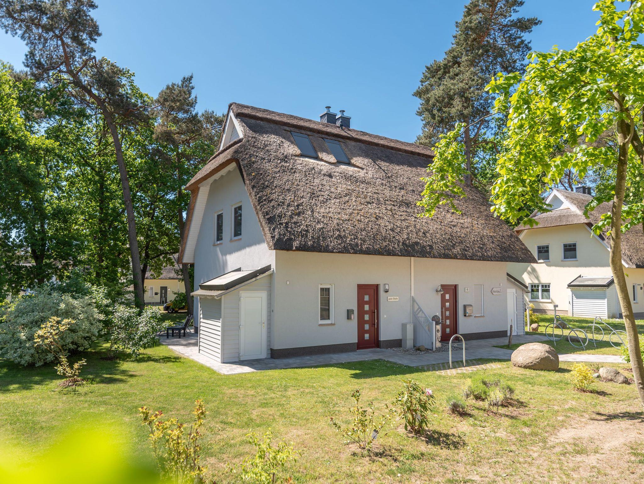 Das charmante Ferienhaus Gute Stube befindet sich im Fischerdorf Zirchow auf Usedom und wurde 2019 fertiggestellt. Es handelt sich um eine Doppelhaushälfte mit gemütlichem Reetdach am Ende einer kleinen Stichstraße, so dass Sie auch vom geringen Autoverkehr im Dorf nicht behelligt werden und die Kinder um das Haus herum im Garten spielen können. Das Haus erstreckt sich u?ber zwei Etagen und ein ausgebautes Dachgeschoss. Es ist modern und freundlich eingerichtet.