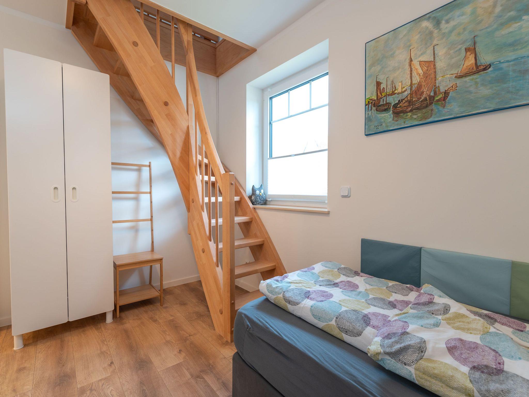 Das ausgebaute Dachgeschoss ist mit zwei Betten, die man aufeinander bauen oder nebeneinander aufstellen kann, ausgestattet und kann ebenfalls mitgemietet werden. Hier ist der ideale Ru?ckzugsort fu?r ältere Kinder oder jung gebliebene Erwachsene.