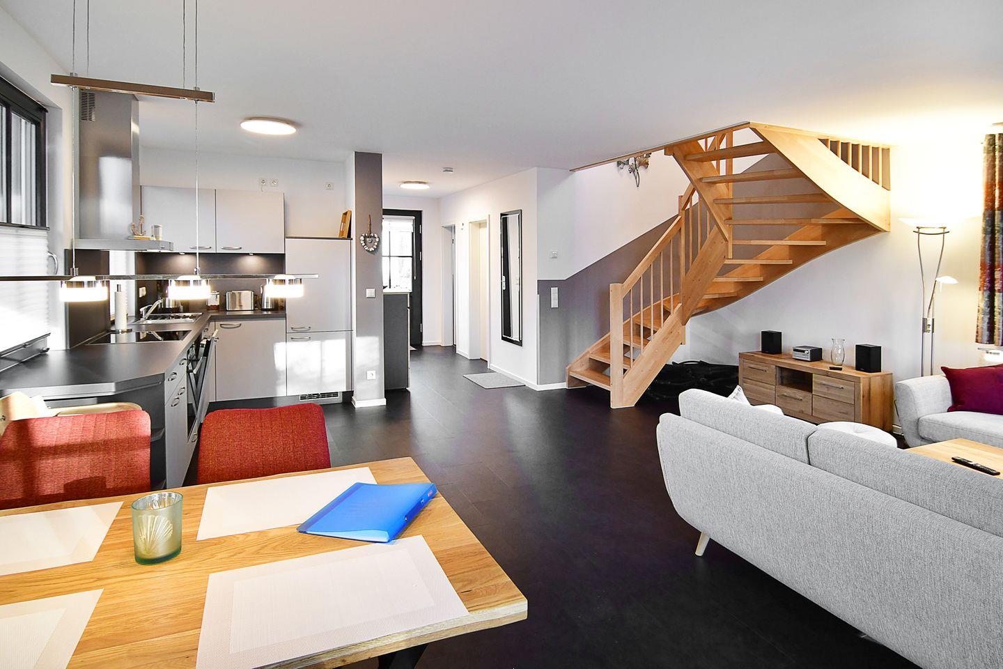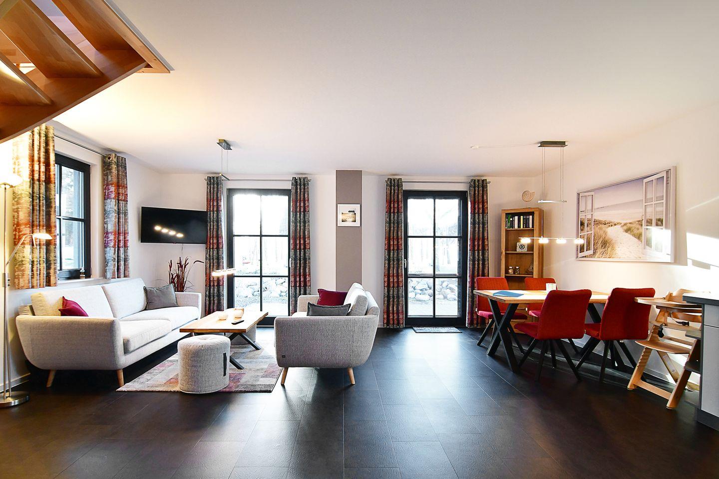 Der großzügig kombinierte Wohn- und Essbereich führt Sie direkt zur Terrasse mit Süd-/Westlage, auf der Sie die Sonnenstunden Usedoms genießen können.