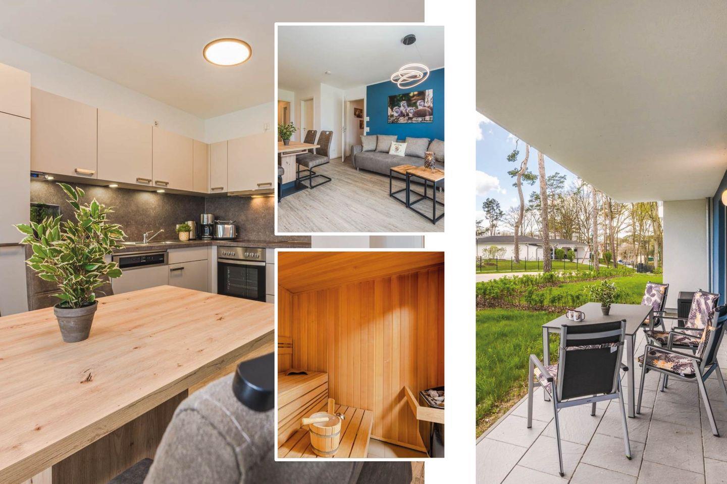 Dieses exklusive 74?m² große Appartement bietet Ihnen eine stilvolle Auszeit mitten in der Natur – ideal für Paare, kleine Familien oder Erholungssuchende. Die moderne Wohnung befindet sich in einem ruhigen Dorf, rund 8?km vom nächsten Strand entfernt, und vereint ländlichen Charme mit hochwertiger Ausstattung. Genießen Sie Ihr Frühstück auf der überdachten Terrasse mit Gartenblick oder starten Sie in den Tag mit einer entspannenden Runde in der hauseigenen Sauna.