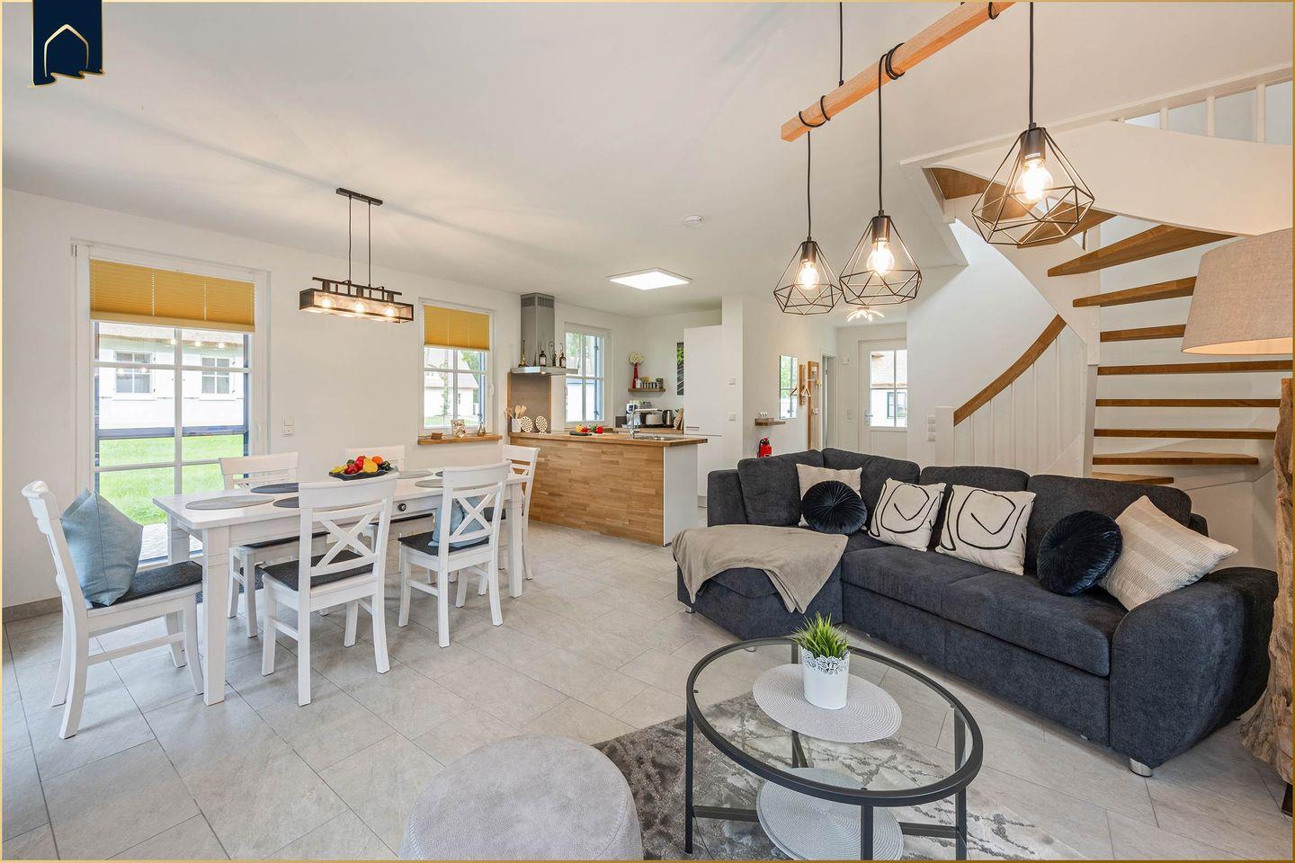 Dieses moderne Ferienhaus in idyllischer, waldnaher Dorflage bietet auf 88 m² Wohnfläche höchsten Komfort für bis zu 4 Personen. Die Unterkunft ist freistehend, ruhig gelegen und eignet sich perfekt für Erholungssuchende, Naturliebhaber und Familien. Zwei Schlafzimmer, ein stilvolles Badezimmer mit Dusche und Badewanne sowie ein zusätzliches Gäste-WC sorgen für genügend Platz. Das Ferienhaus wurde 2023 erbaut und überzeugt mit hochwertiger Ausstattung und durchdachtem Raumkonzept auf zwei Etagen.