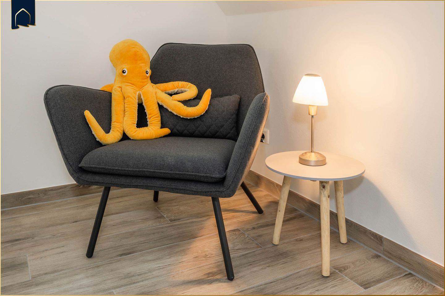 Ein Highlight des Hauses ist die private Sauna, ideal für entspannte Abende nach langen Spaziergängen oder Ausflügen. Der gepflegte Garten mit Gartenmöbeln, Liegewiese, Grill und Gartenhaus bietet Raum für gesellige Stunden im Freien. Die moderne Küche ist vollständig ausgestattet – von Geschirrspüler und Backofen bis zur Espressomaschine ist alles vorhanden. Für Familien mit Kindern gibt es Bücher, Brettspiele und ausreichend Platz zum Toben. Auch Hunde sind willkommen.