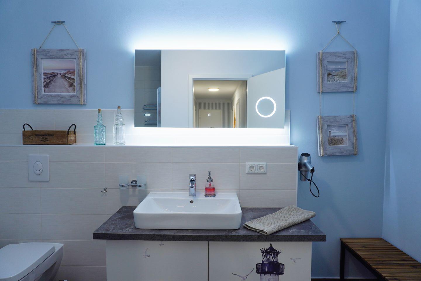 Erholsame Nächte im komfortablen Boxspringbett (180 x 200 cm) und einem weiteren Smart-TV im ersten Schlafzimmer sind garantiert. Das zweite Schlafzimmer ist mit zwei großzügigen Einzelbetten (jeweils 120 x 200 cm) ausgestattet. Das Schlafsofa im Wohnzimmer kann im Handumdrehen zu einem Bett umfunktioniert werden (Liegefläche: 150 x 200 cm). Die beiden vollausgestatteten Badezimmer verfügen jeweils über eine ebenerdige Dusche, WC, Waschtischanlage sowie Fön. Die Wohn- und Schlafräume können mittels Außenjalousien komplett abgedunkelt werden. Die Schlafzimmerfenster sowie ein Wohnzimmerfenster sind mit Insektenschutz ausgestattet. Ihr Hund bis maximal 15 kg ist bei uns willkommen.
