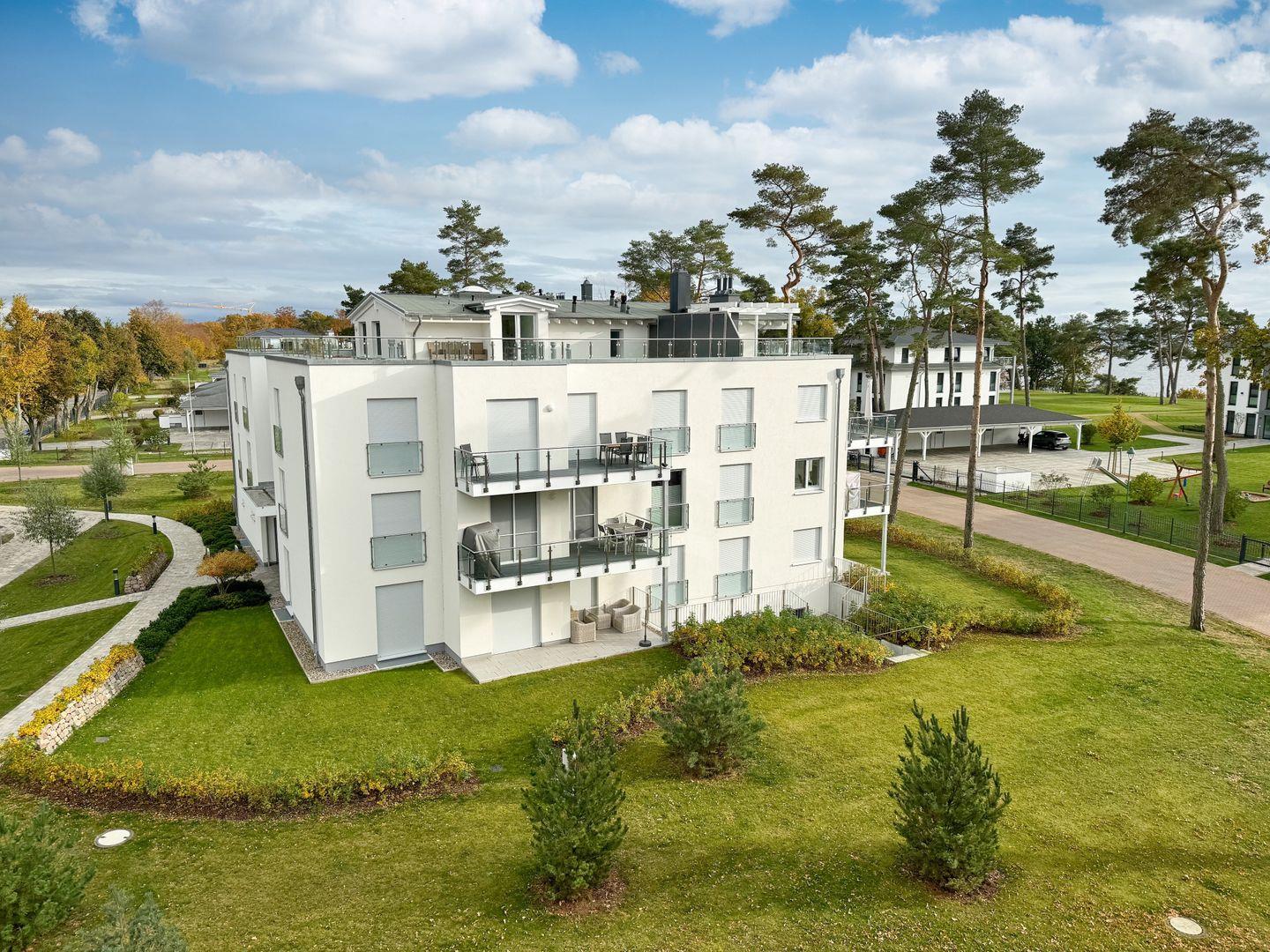 Das Apartment mit Balkon und Meerblick verfügt über 2 Schlafzimmer, 1 Wohnzimmer, Smart-TV, eine vollständig ausgestattete Küche mit Geschirrspüler und Backofen sowie 2 Badezimmern mit einer ebenerdigen Dusche. Handtücher und Bettwäsche werden im Apartment gestellt. Die komfortablen Boxspringbetten sowohl Doppelbett als auch Einzelbett bieten erholsame Nächte.