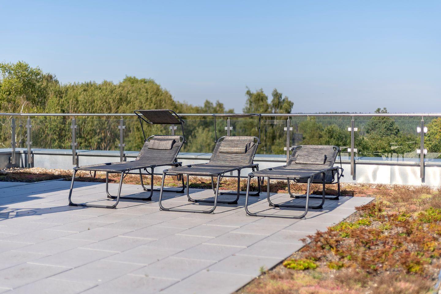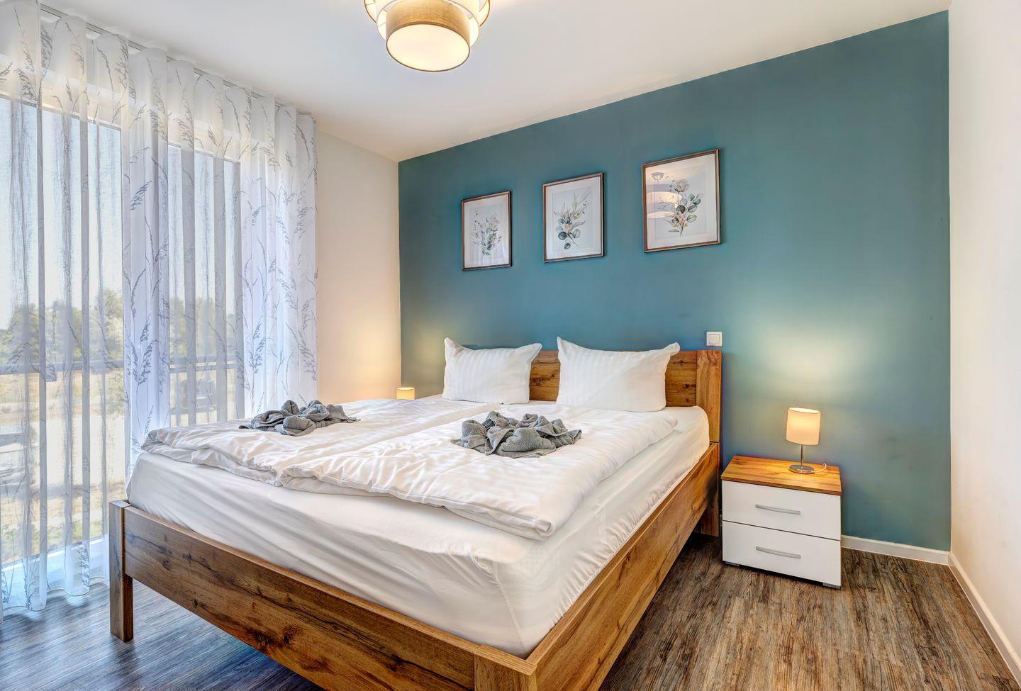 Die beide Schlafzimmer sind ein Ort der Ruhe und Entspannung. Das komfortable Boxspringbett verspricht erholsame Nächte, und die großen Fenster lassen Sie den Wald und das Haff auch vom Bett aus bewundern. Die beide Badezimmer sind modern und elegant gestaltet, mit einer geräumigen Dusche und allen Annehmlichkeiten, die Sie benötigen.