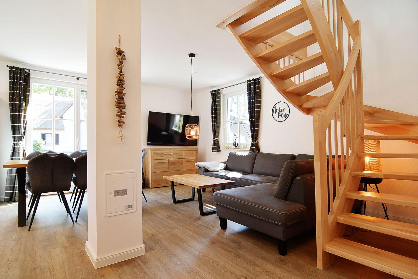 Der großzügig kombinierte Wohn- und Essbereich führt Sie direkt zur Terrasse mit Süd-/Westlage, auf der Sie die Sonnenstunden Usedoms genießen können.