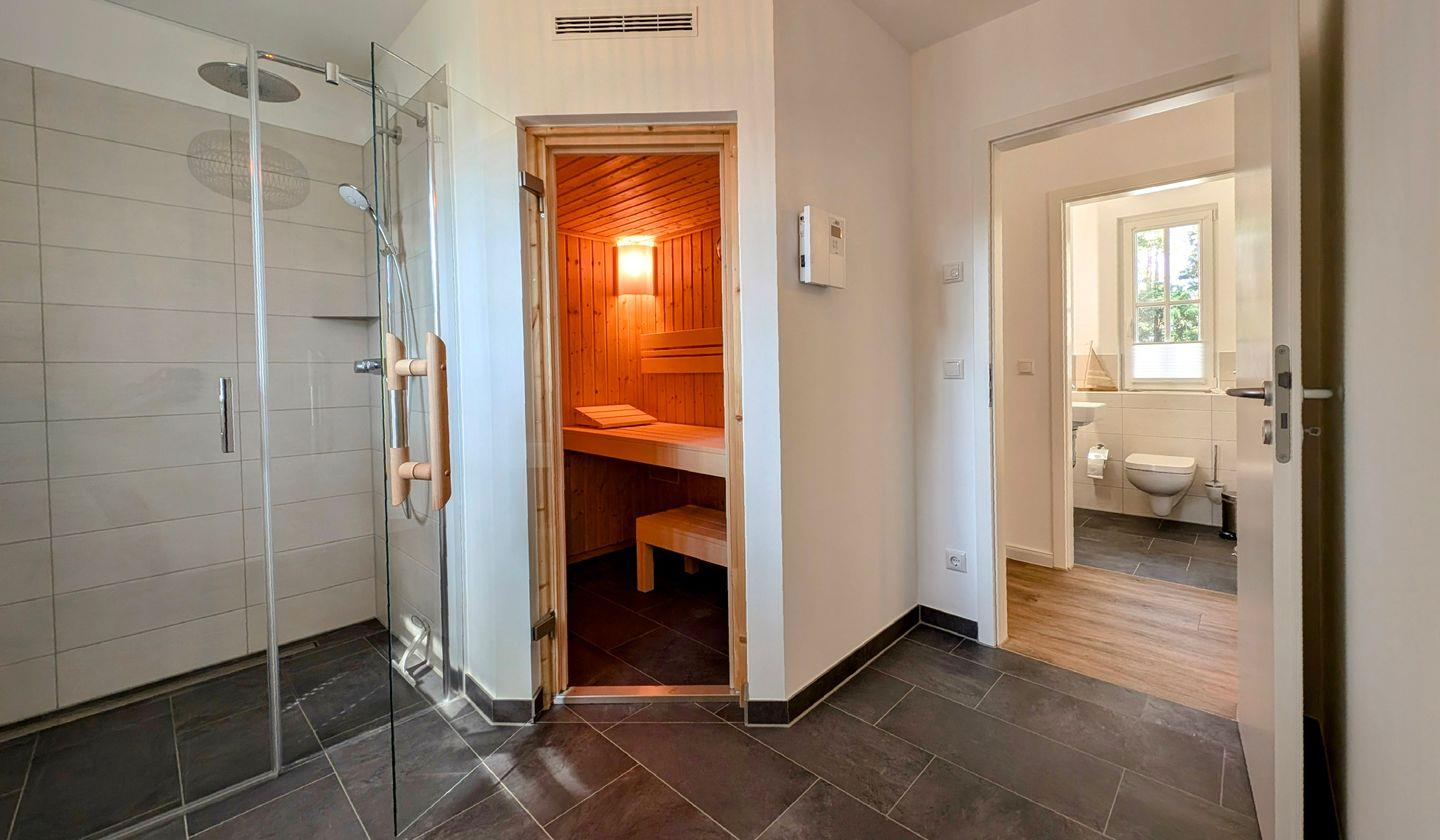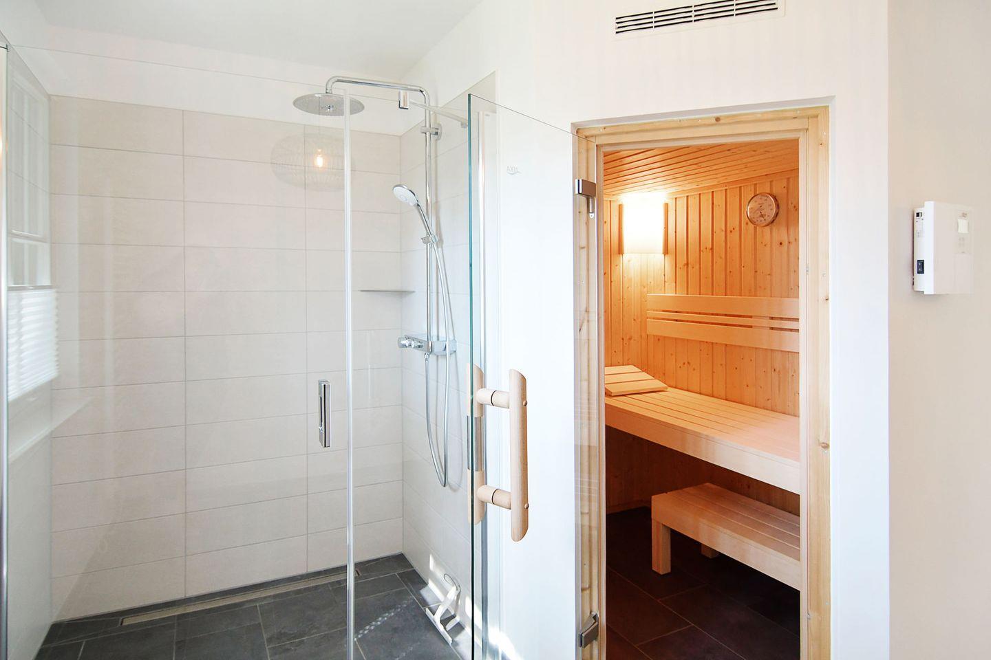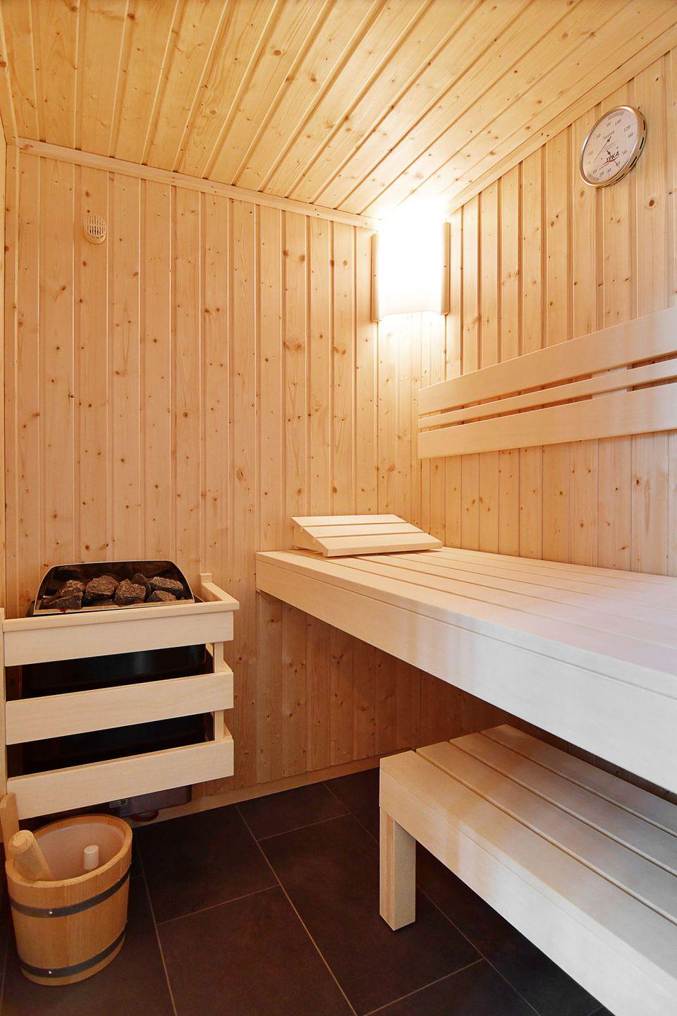 An kalten Tagen können Sie sich in der Sauna aufwärmen.